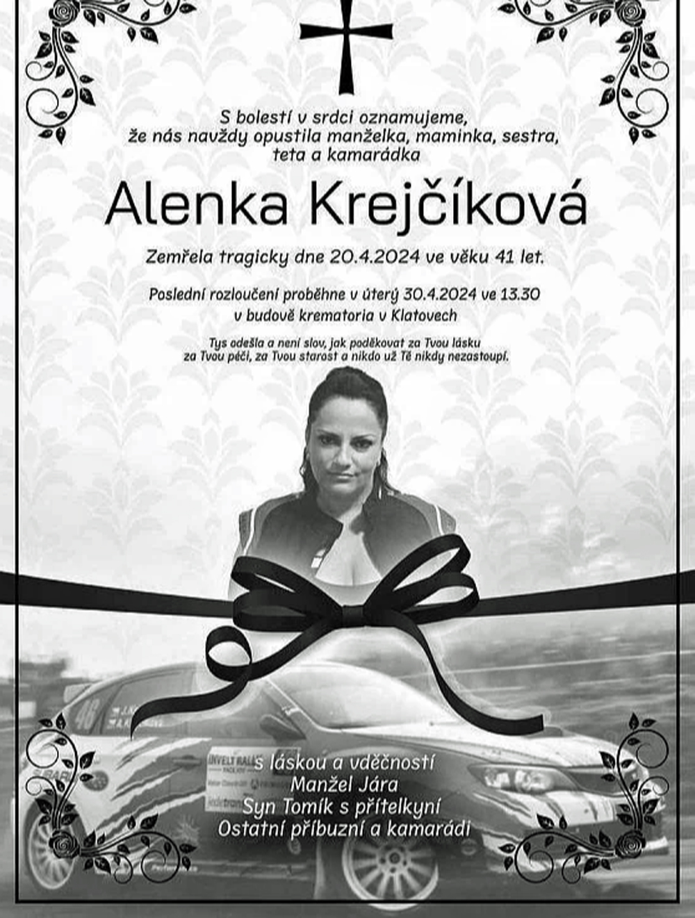 Nečekaně vysokou sumu vybrali mezi sebou lidé v rámci sbírky pro pozůstalou rodinu 41leté navigátorky. Alena Krejčíková totiž o víkendu zemřela po tragické nehodě na Rallye Šumava.
