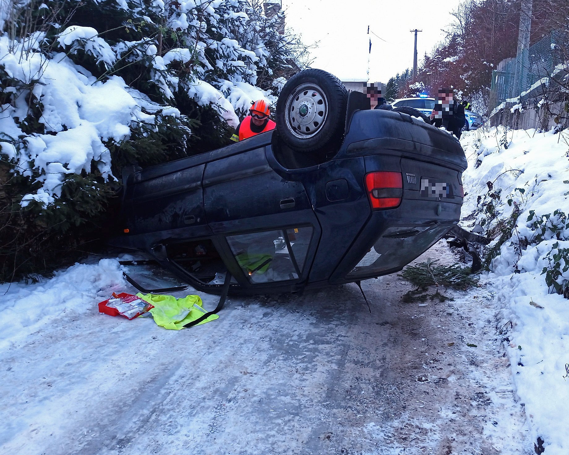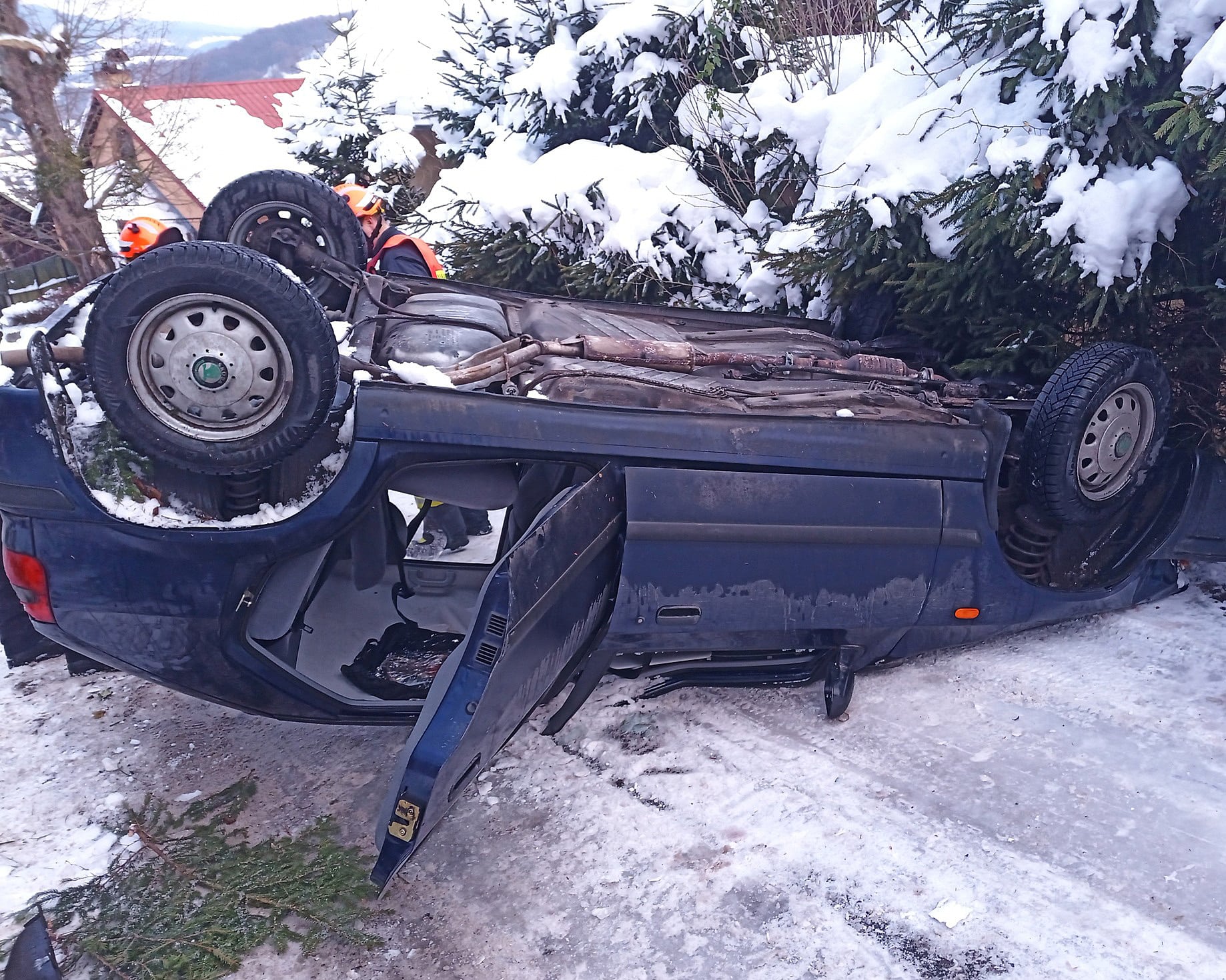 Čtyři mladíci bourali s Felicií na zmrzlé silnici, převrátili ji na střechu