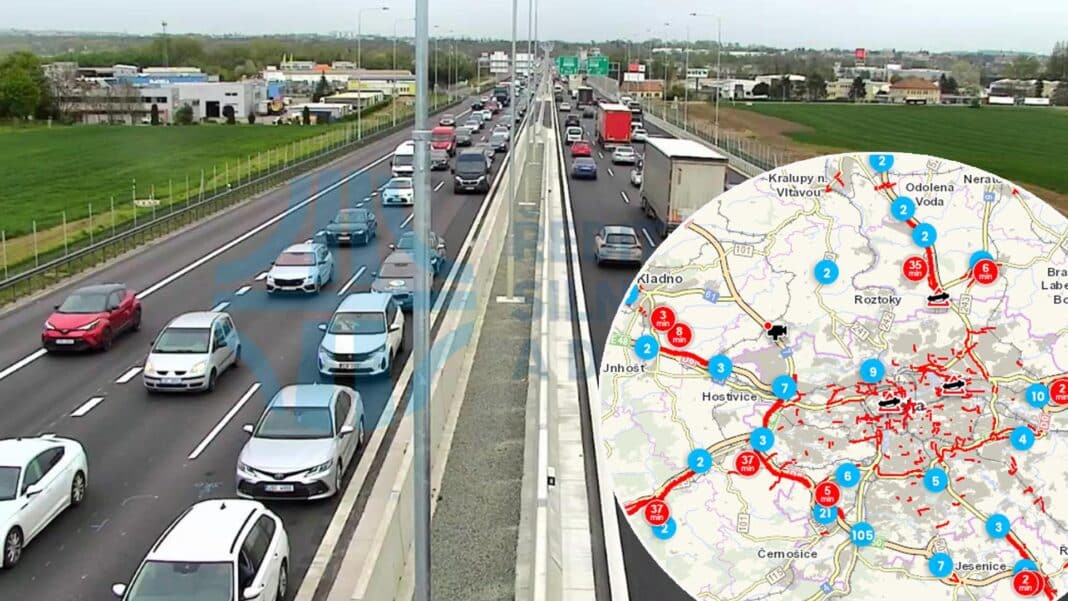 Ucpaný je též Pražský okruh D0 v úseku od Řep až po Lochkovský tunel. Červeně svítí též Štěrboholská a Jižní spojka a další vytížené trasy po celé Praze. Se zdržením musí počítat řidiči na výjezdu z Prahy po nejstarší tuzemské dálnici D1. Od Čestlic se popojíždí v koloně až po Hrusice.