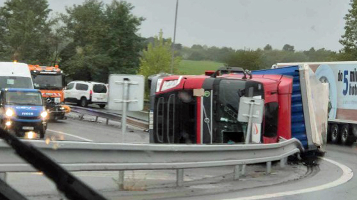 Řidič kamionu patrně na mokré silnici neodhadl, jak moc prudká tato zatáčka je a s návěsem se převrátil do středových svodidel. Nehoda tak zasahuje do obou jízdních pruhů, nejdelší kolony se ve čtvrtek dopoledne tvořily na dálnici D10 ve směru od Turnova. Kolona čítá už asi 7 kilometrů.