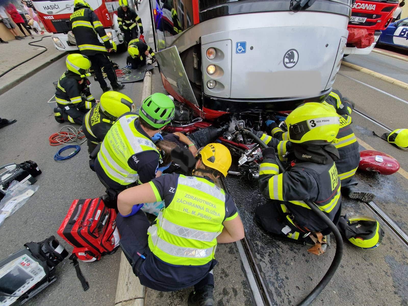V Sokolovské ulici v Praze srazila a přejela tramvaj motorkáře. Z pod tramvaje jej museli vyprostit ve čtvrtek odpoledne pražští hasiči. Utrpěl vážná zranění.