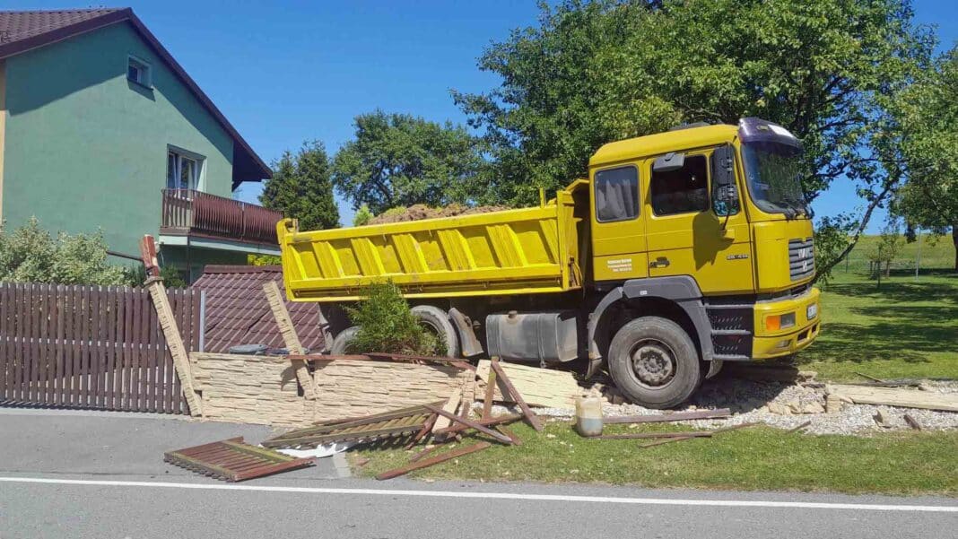 Bylo však velké štěstí, že zrovna místem nikdo neprocházel. Náklaďák se stočil na přilehlý pozemek, kde prorazil plot z betonových desek, značně ho pobořil, přejel a pokračoval až k rodinnému domu, kde pobořil dřevěnou konstrukci.
