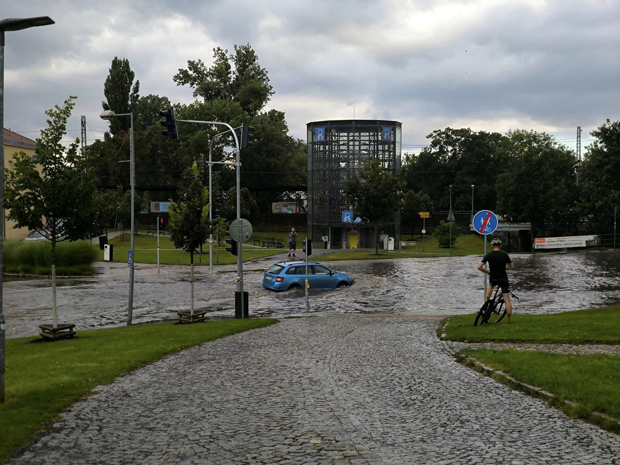 Postupně se bouřky posunuly také přes střední Čechy až na sever, například v Litoměřicích přívalové deště zatopily celé ulice. Na některých místech vznikly laguny, kterými měly velký problém projet osobní auta.
