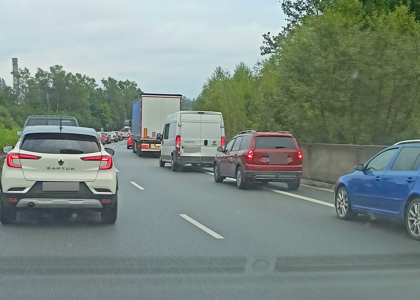 A nekonečná kolona nechyběla ani u Liberce ve směru od Chrastavy, kde se šňůra aut tvořila dopoledne už od nájezdu od Stráže. V zatáčce před betonárkou havaroval Mercedes s polskou SPZ. Také tato nehoda se naštěstí obešla bez vážnějších následků.