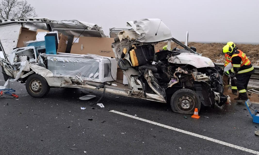 Foto: Drtivá srážka na D35 u Litovle. Dodávka skončila rozpáraná
