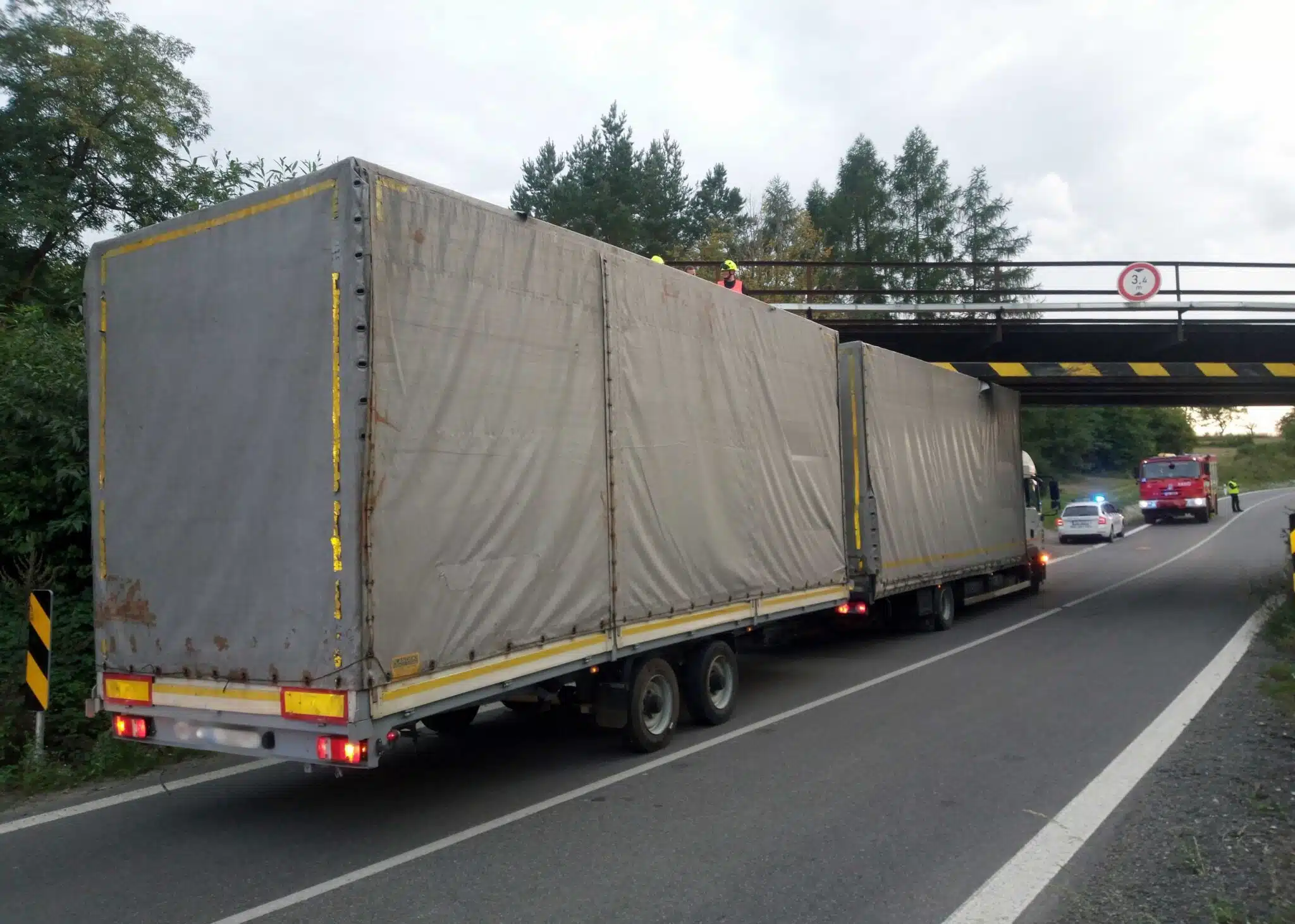 Zřejmě doufal, že se vejde. Odhad byl ale špatný. Řidič ve středu večer napasoval kamion pod most na silnici č. II/308 mezi Černčicemi a Novým Městem nad Metují.