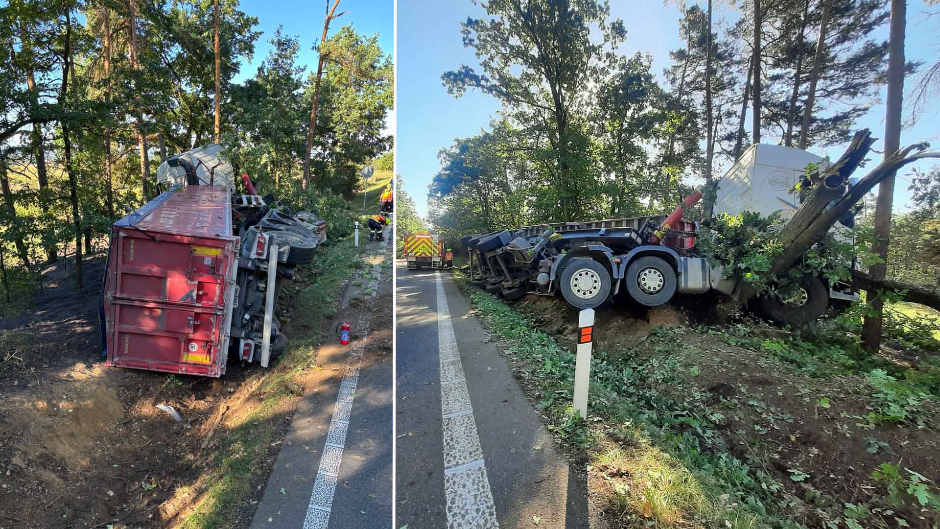Na místě zasahovali profesionální hasiči z Milevska a JSDHO Mirovice. Řidiče ošetřila zdravotnická záchranná služba. „Hasiči řešili únik provozních kapalin, zajištění auta a na žádost policistů rozřezali strom, na kterém zůstal kamion zaklíněn,“ uvedla mluvčí hasičů Vendula Matějů.