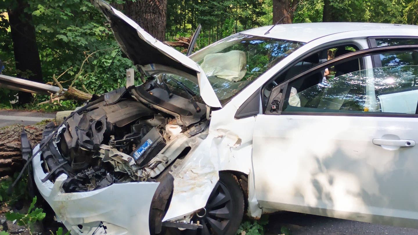Hasiči z Třeboně a Suchdola nad Lužnicí stejně jako záchranáři a policisté zasahovali v neděli odpoledne u Majdaleny na Jindřichohradecku. Na projíždějící automobil Ford Focus tam za jízdy nečekaně spadl vzrostlý strom. Pro řidičku a její dvě děti to byl naprostý šok. Muselo se jednat o velkou ránu, auto skončilo značně zdemolované.
