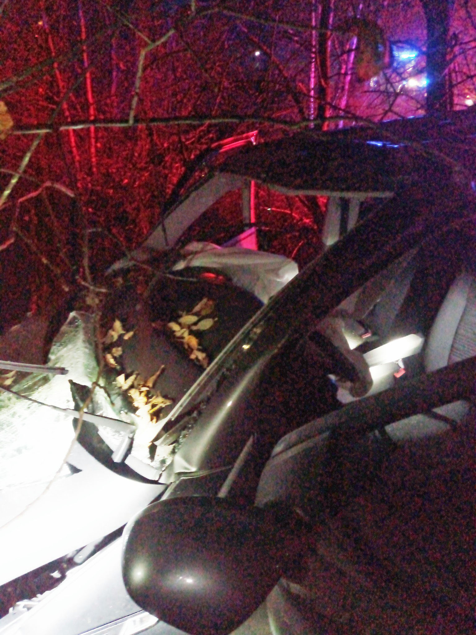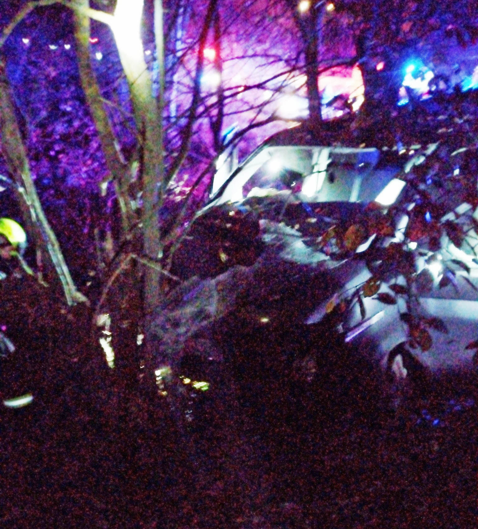 Ti ihned vyrazili na místo, kde zjistili, že vozidlo skončilo mimo komunikaci, dokonce vyjelo do stráně nad silnicí, kde narazilo do stromu. Vůz skončil se zdemolovanou přední částí, jeden člověk přitom utrpěl zranění.