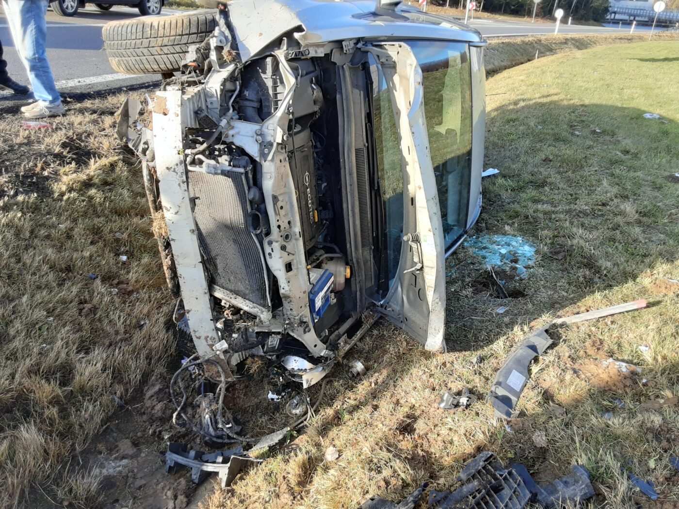 Ve středu na 1. svátek Vánoční před polednem zasahovali hasiči na 90. kilometru dálnice D1 ve směru na Prahu. Na Vysočině nedaleko Humpolce havaroval řidič s osobním autem značky Opel.