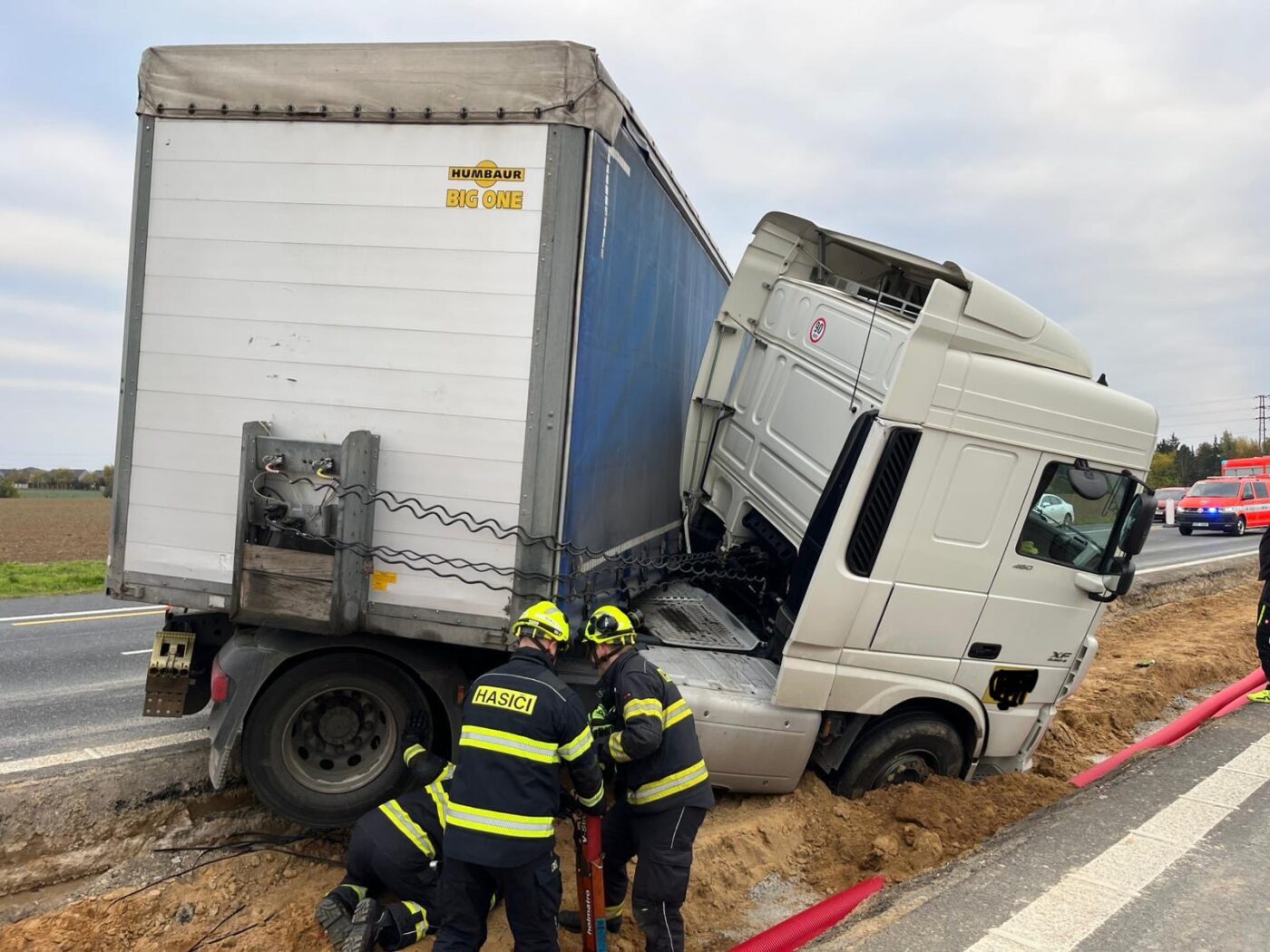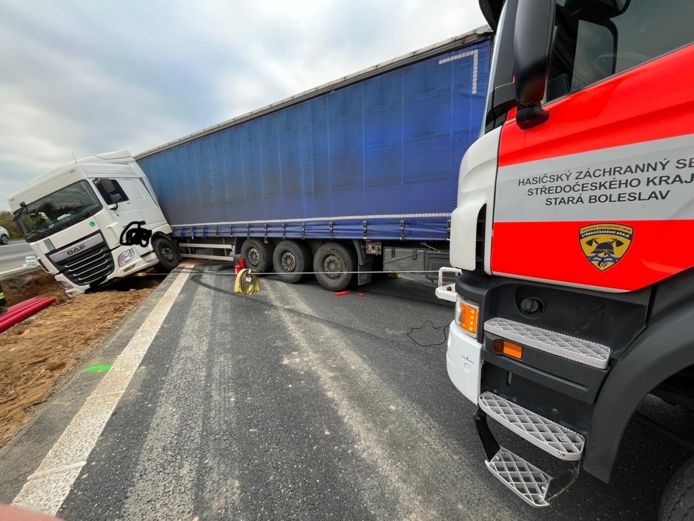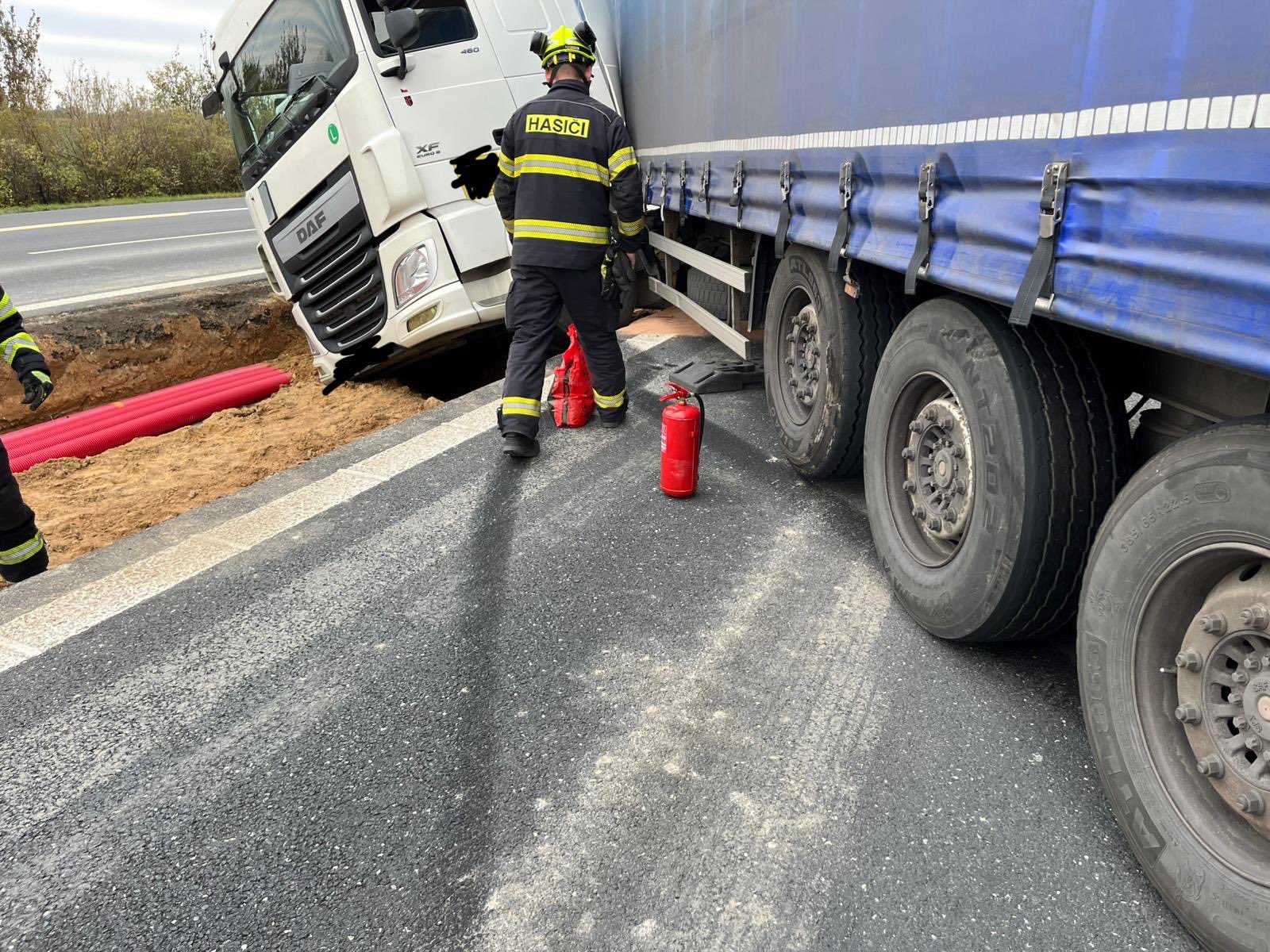 „Kamionu se prorazila vana naftové nádrže, museli jsme odčerpat cca 700 litrů nafty,“ doplnili zasahující středočeští hasiči.