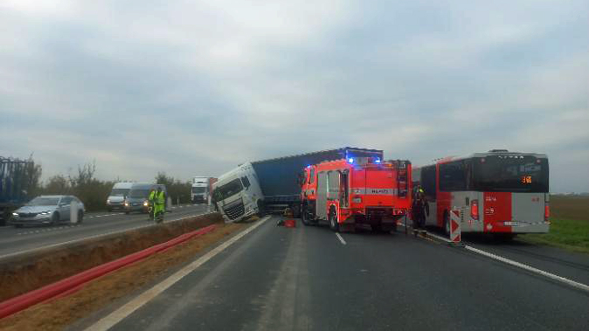 Foto: Nehoda kamionu na D10