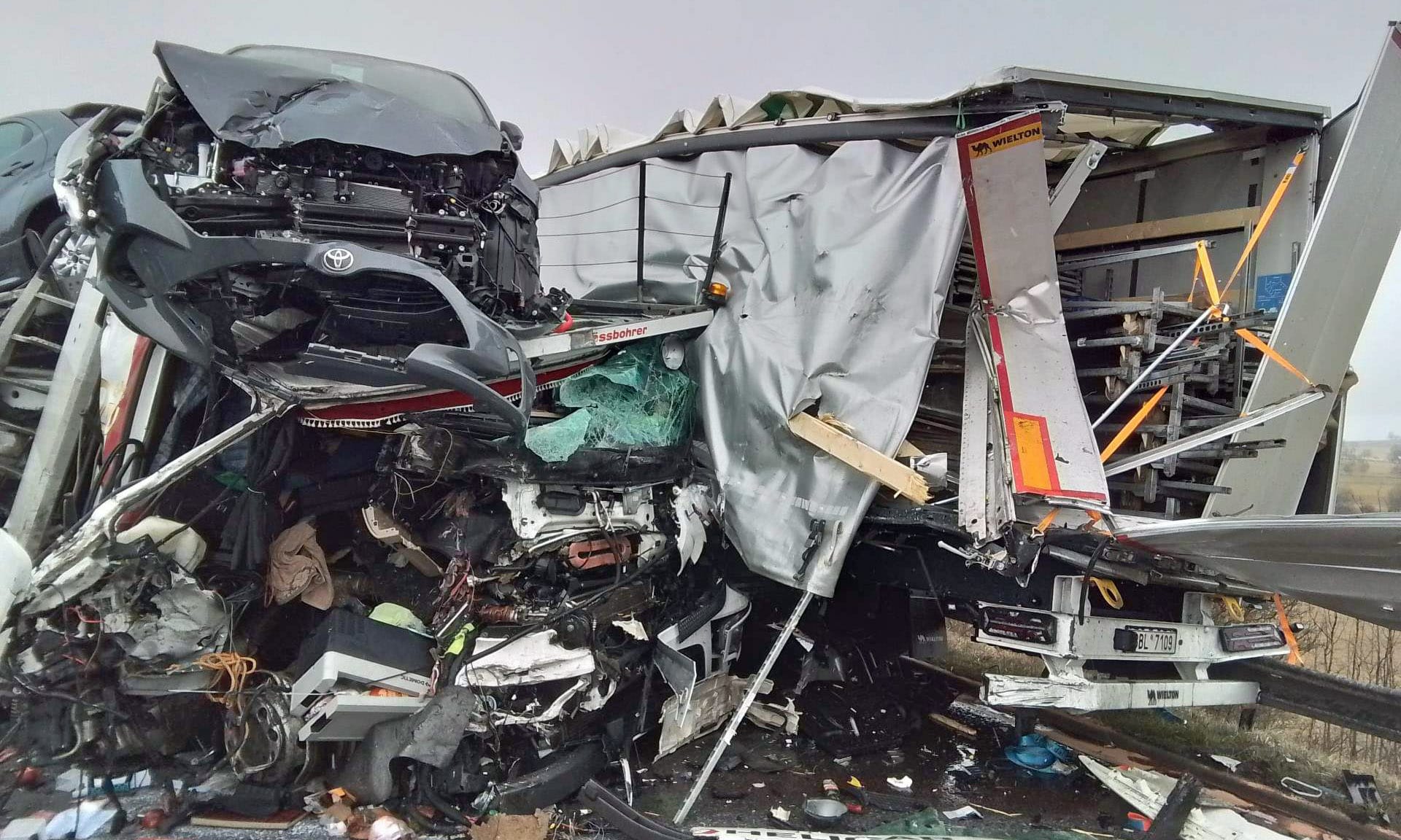Velmi smutný pohled se naskytl milovníkům nových aut značky Toyota. Hned několik jich jich skončilo zničených po srážce tří kamionů na dálnici D8 u Knínice.