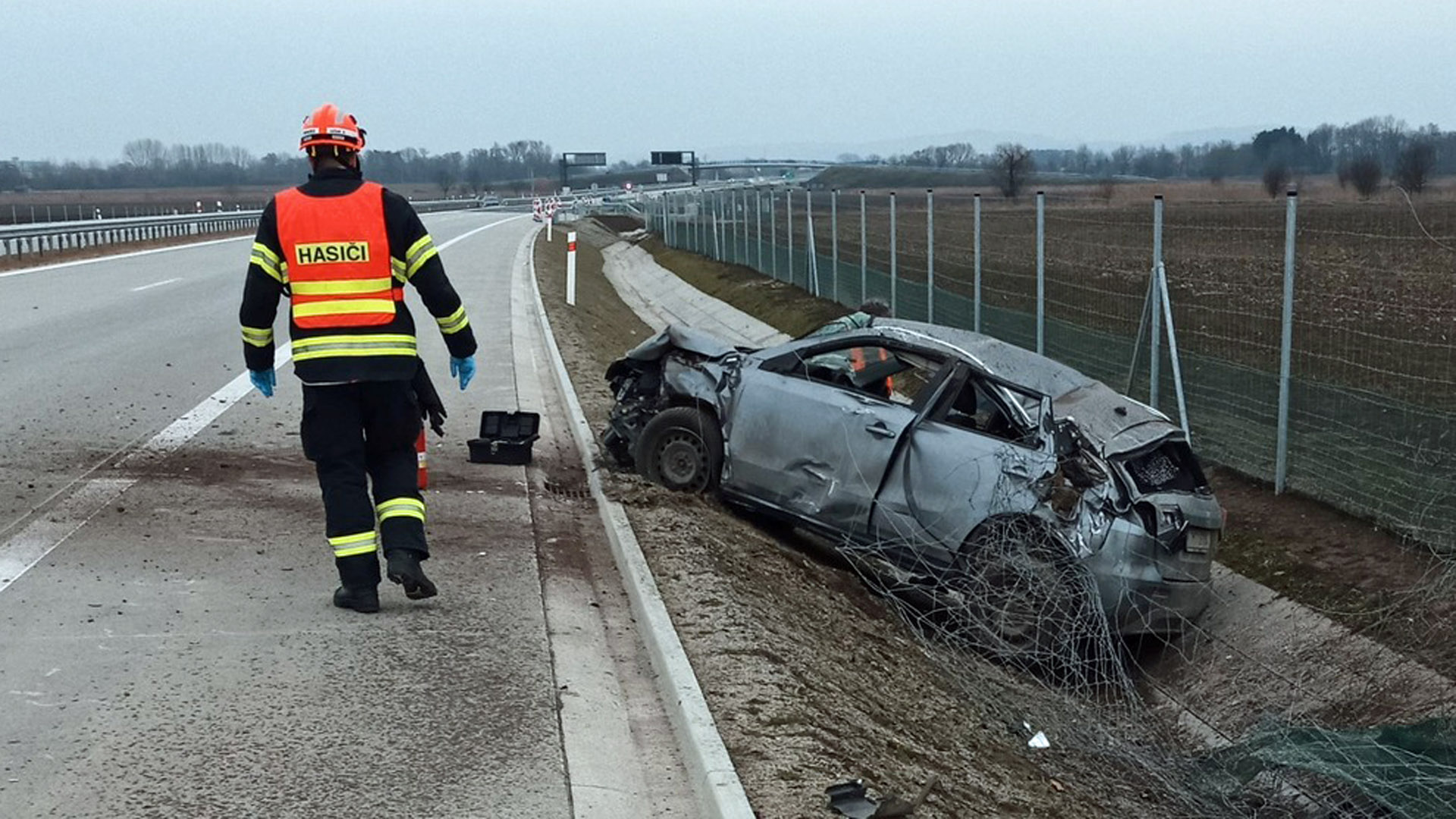 K nehodě spěchali hasiči ze stanic Kroměříž a Holešov. „Ihned po příjezdu poskytli první předlékařskou péči zraněnému řidiči a následně jej předali posádce zdravotnické záchranné služby. Dále provedli protipožární opatření a odpojení akumulátoru,“ uvedla mluvčí hasičů.