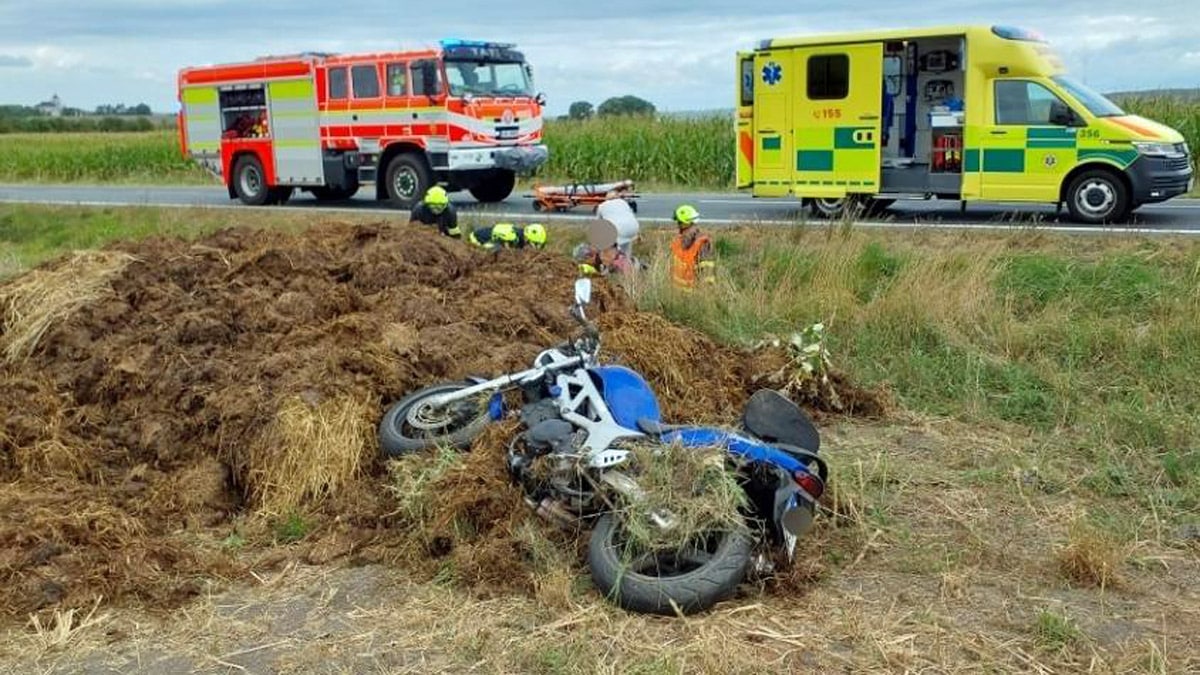 V sobotu dopoledne zasahovali hasiči a záchranáři u dopravní nehody v obci Podhořany u Ronova, kde došlo ke střetu motocyklu s osobním automobilem. Byla to taková rána, že motocykl vyletěl ze silnice a skončil na hromadě hnoje na poli vedle silnice.