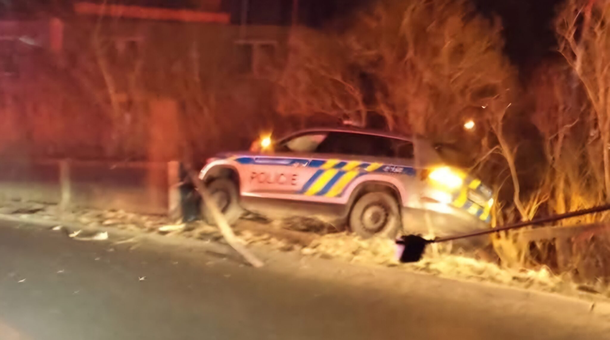 Nepříjemné nehody se nevyhýbají ani policii. V neděli v noci havarovali policisté služebním vozem v Liberci.