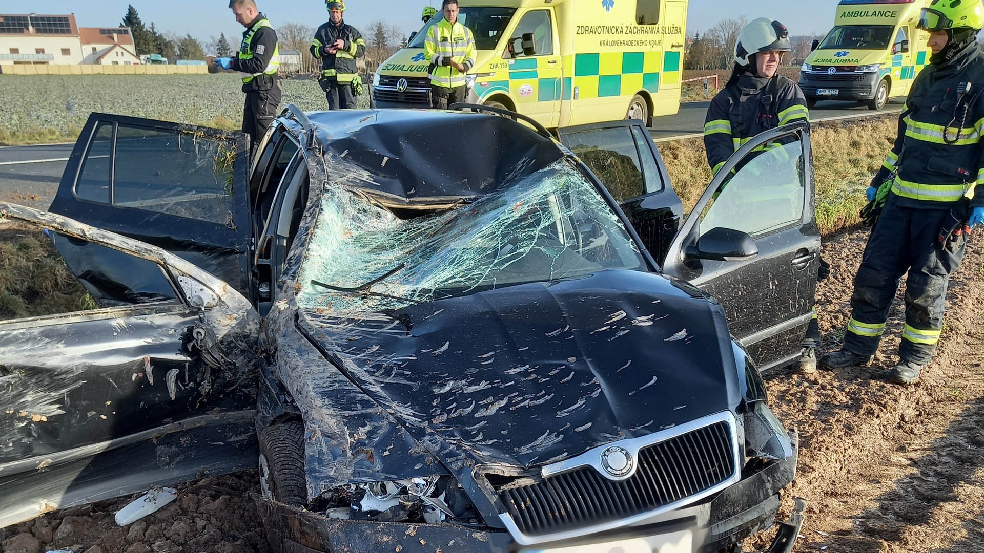 Další nehoda se stala silnici II/601 na úrovni Roudnice na Královéhradecku, kde havarovalo osobní auto. Řidič s černou Škodou Octavií Combi vyjel ze silnice a převrátil se přes střechu. Vůz skončil značně zdemolovaný.