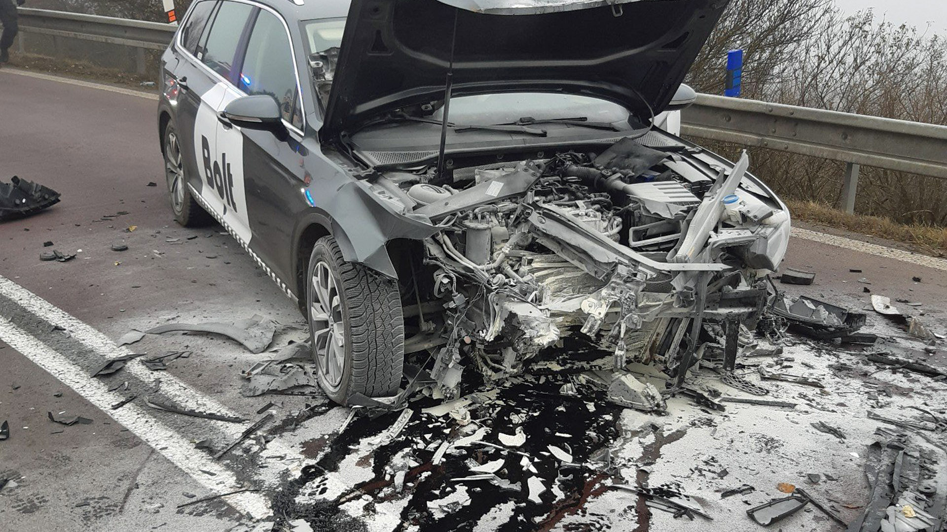 Vážná nehoda se stala v neděli po 11. hodině v Praze. Na sjezdu z Pražského okruhu na Barrandov vjel pravděpodobně řidič Boltu do protisměru a čelně narazil do protijedoucího auta.
