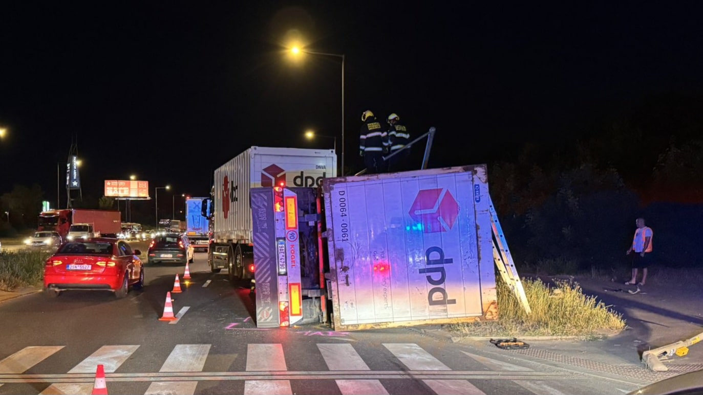 Na místě zasahují pražští hasiči, kteří přívěs zvednou automobilovým jeřábem. Omezení tam potrvá zhruba do čtvrteční jedné hodiny ráno.