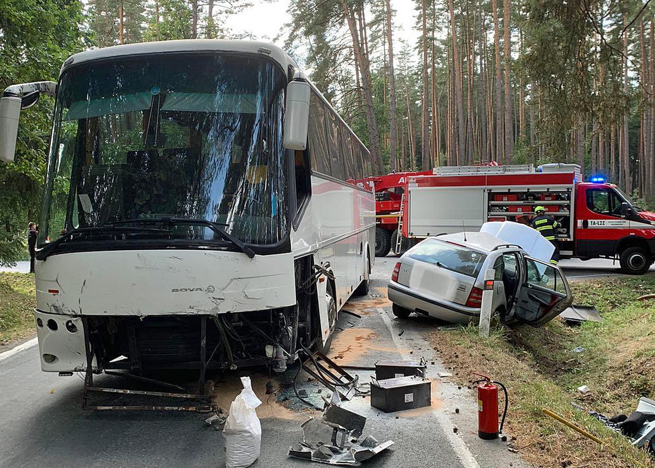 Tragická nehoda auta a autobusu nedaleko Tábora. Foto: PČR