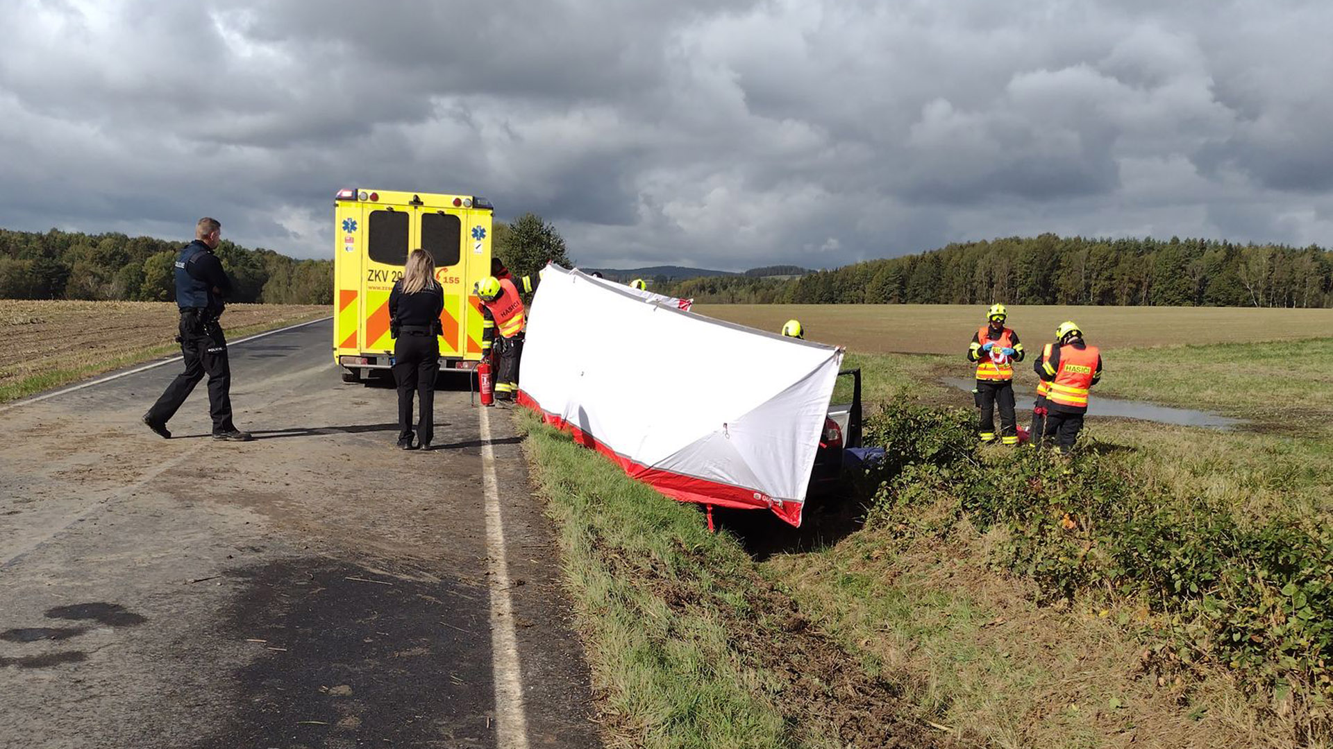 Hasiči dnes uvolnili další informace a fotografie k sobotní tragické nehodě na silnici poblíž Nového Kostela v okrese Cheb. „69letý řidič tam ze zatím nezjištěných příčin vyjel vpravo mimo vozovku,“ uvedl mluvčí karlovarské policie Jan Bílek.