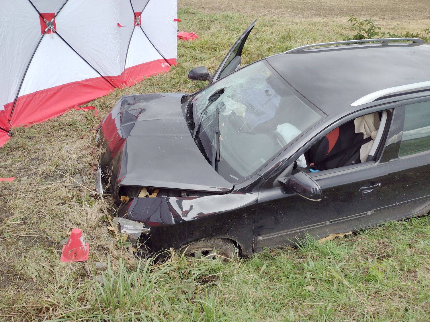 Řidič měl obrovskou životní smůlu, že s autem sjel zrovna v místě, kde příkop protíná betonový mostek sloužící k průjezdu zemědělské techniky na tamní pole. Vůz tak do betonového mostku narazil patrně bez většího zpomalení.
