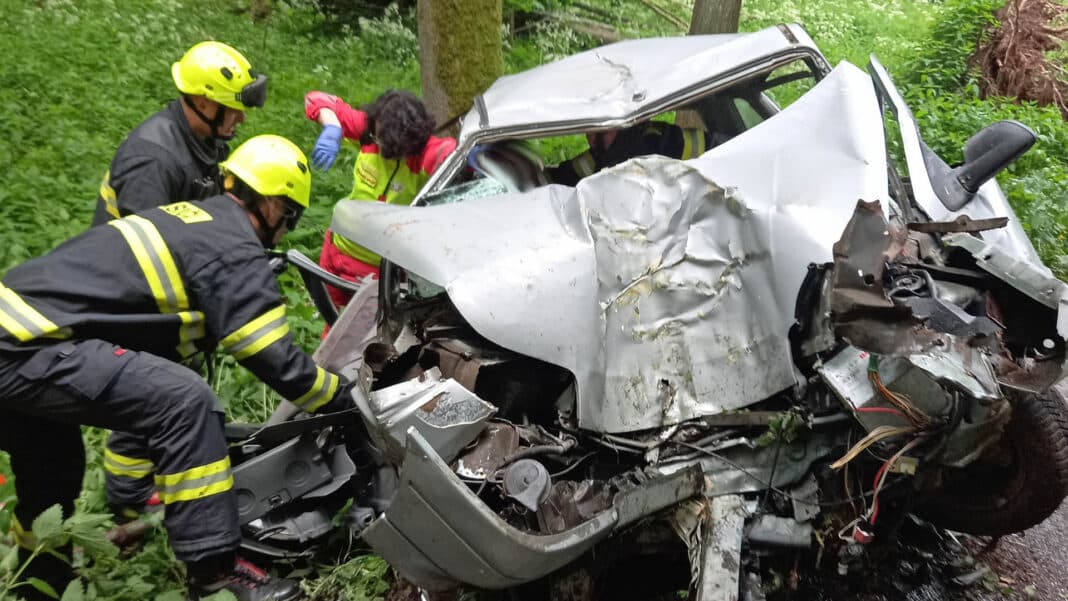Nehoda se stala v sobotu brzy ráno v lesním úseku u Mladých Buků na Trutnovsku, když řidič malého Renaultu Clio první generace vyjel ze silnice a narazil do stromu. Náraz to byl drtivý, přední část vozu skončila značně zdemolovaná a řidiči i jeho spolujezdec utrpěli zranění.
