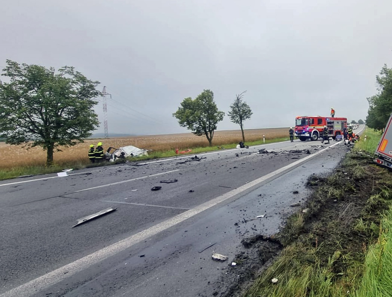 Část osobního auta kamion při srážce slisoval a odřízl. Zbylá část osobního auta byla odmrštěna vlevo do pole. „Řidič osobního automobilu při nehodě zemřel,“ uvedl policejní mluvčí Jiří Matzner. Řidič byl mrtvý ještě před příjezdem záchranářů.