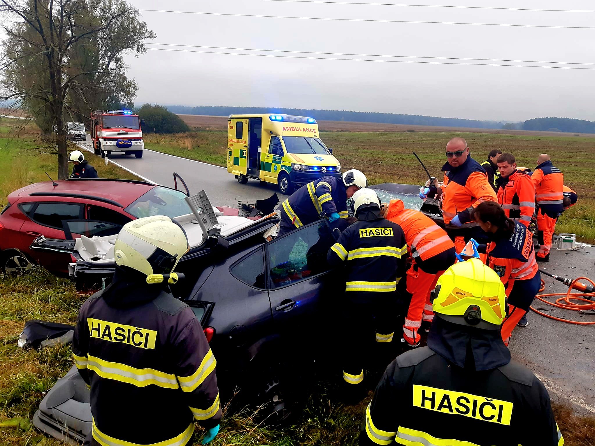 Z vozu černé barvy, které bylo v přední části zcela zdemolované, museli hasiči pomocí hydraulických nástrojů vyprostit mladého řidiče, jeho spolujezdce a spolujezdkyni. „Jednu osobu jsme vyprostili ze zadního sedadla bez vyprošťovacích nástrojů,“ dodali jihočeští hasiči.