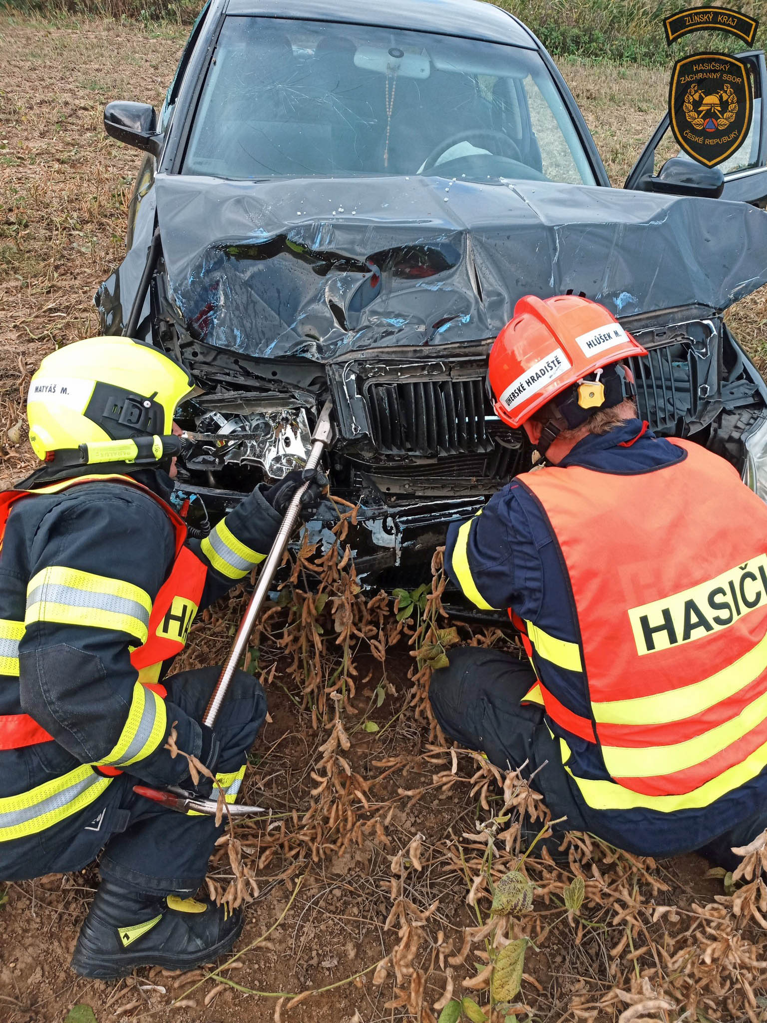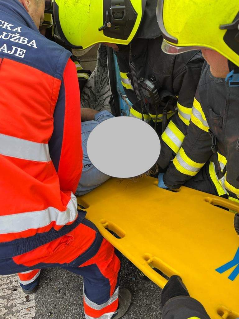 Záchranáři muže imobilizovali krčním límcem, společně s hasiči jej z auta vyprostili na páteřní desce, imobilizovali vakuovou matrací, podali léky tišící bolest a další nezbytné medikamenty, ošetřili a překryli rány a oděrky. Po zajištění v rámci přednemocniční neodkladné péče transportovali seniora na traumatologii Uherskohradišťské nemocnice.