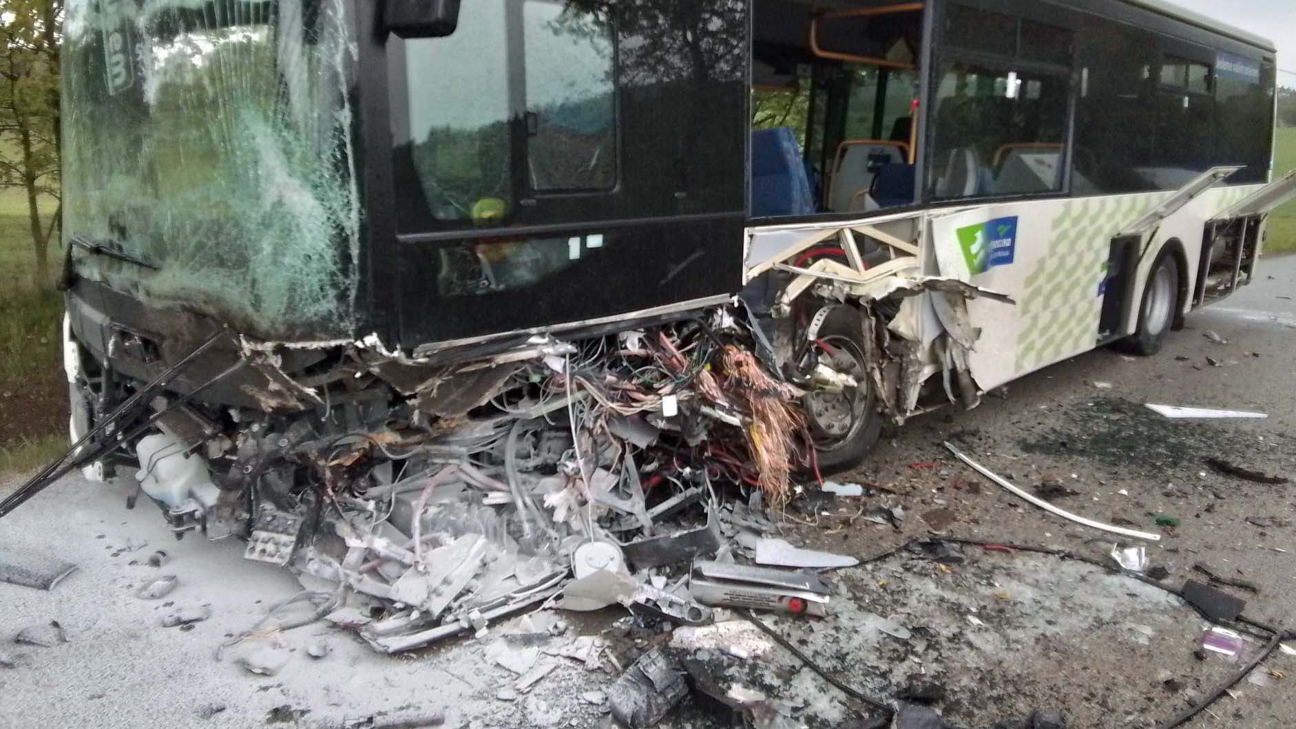 U obce Lhotka na Jihlavsku zasahují záchranáři a hasiči u střetu autobusu a nákladního vozidla. Na místo byl přivolán také vrtulník letecké záchranné služby. Autobus má značně zdemolovanou přední část, ránu dostal vlevo vpředu.