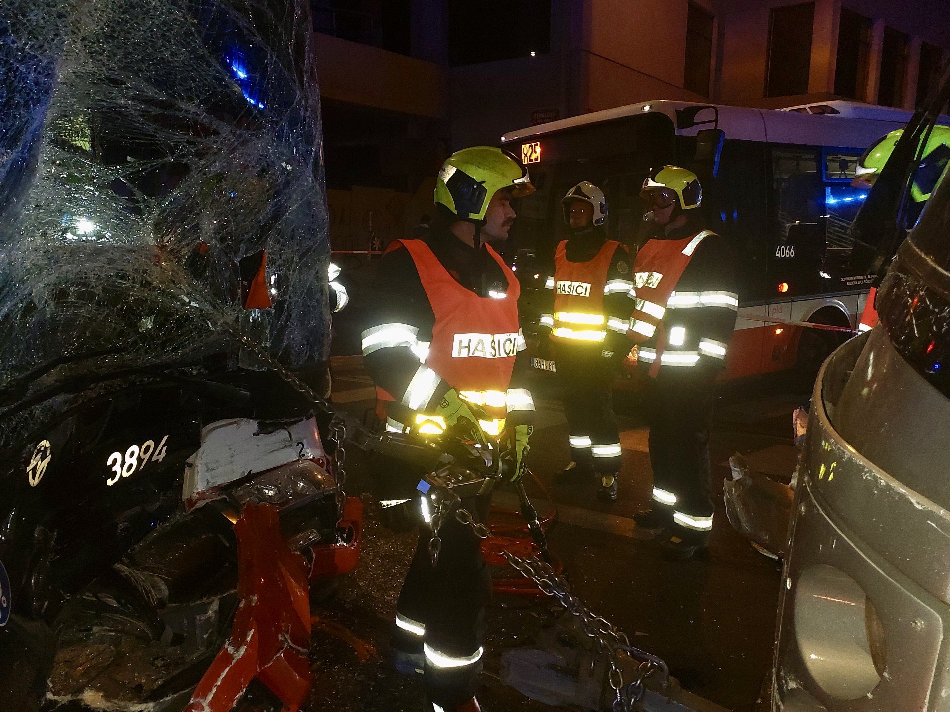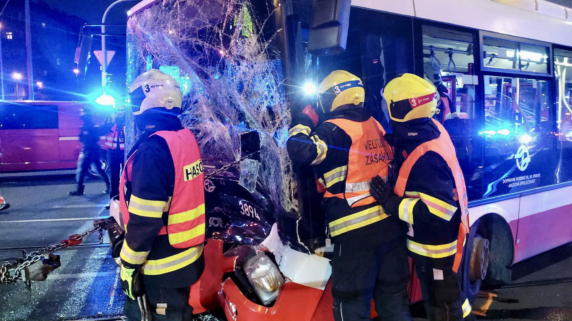 Mluvčí pražské záchranky Jana Poštová upřesnila, že na místě již zasahují tři posádky rychlé záchranné pomoci, lékař a inspektor. „V tuto chvíli máme v péči pět osob z busu včetně řidiče autobusu, kterého hasiči vyprošťovali,“ uvedla Poštová.