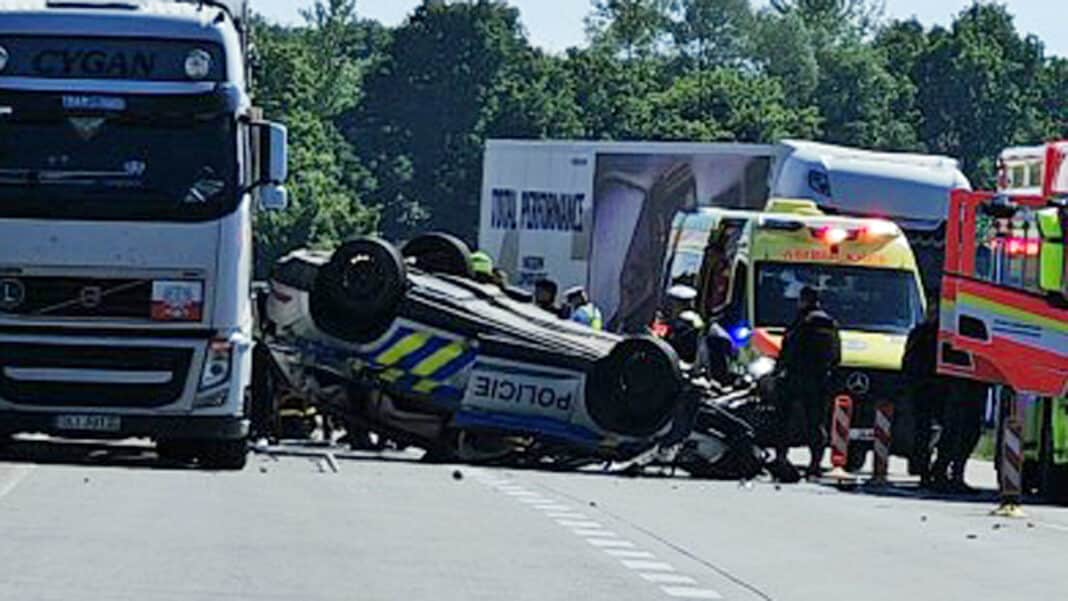 Neprůjezdná v obou směrech byla v úterý odpoledne dálnice D1 na 368. kilometru u Bohumína. Stala se tam vážná nehoda policejního auta a cisterny, dva policisté se zranili.