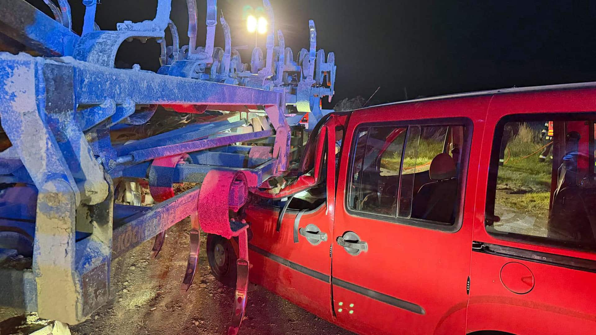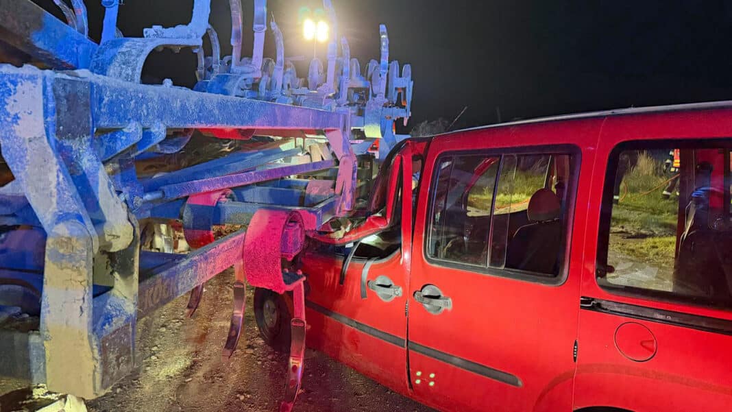 Havárie se stala několik minut před osmnáctou hodinou. Ve Stachovicích u Fulneku narazil řidič osobního auta do konstrukce zemědělské techniky tažené za traktorem. Přední část auta byla po nárazu značně zdemolovaná, uvnitř zůstal zaklíněný řidič, který utrpěl zranění, ale naštěstí byl po celou dobu při vědomí.