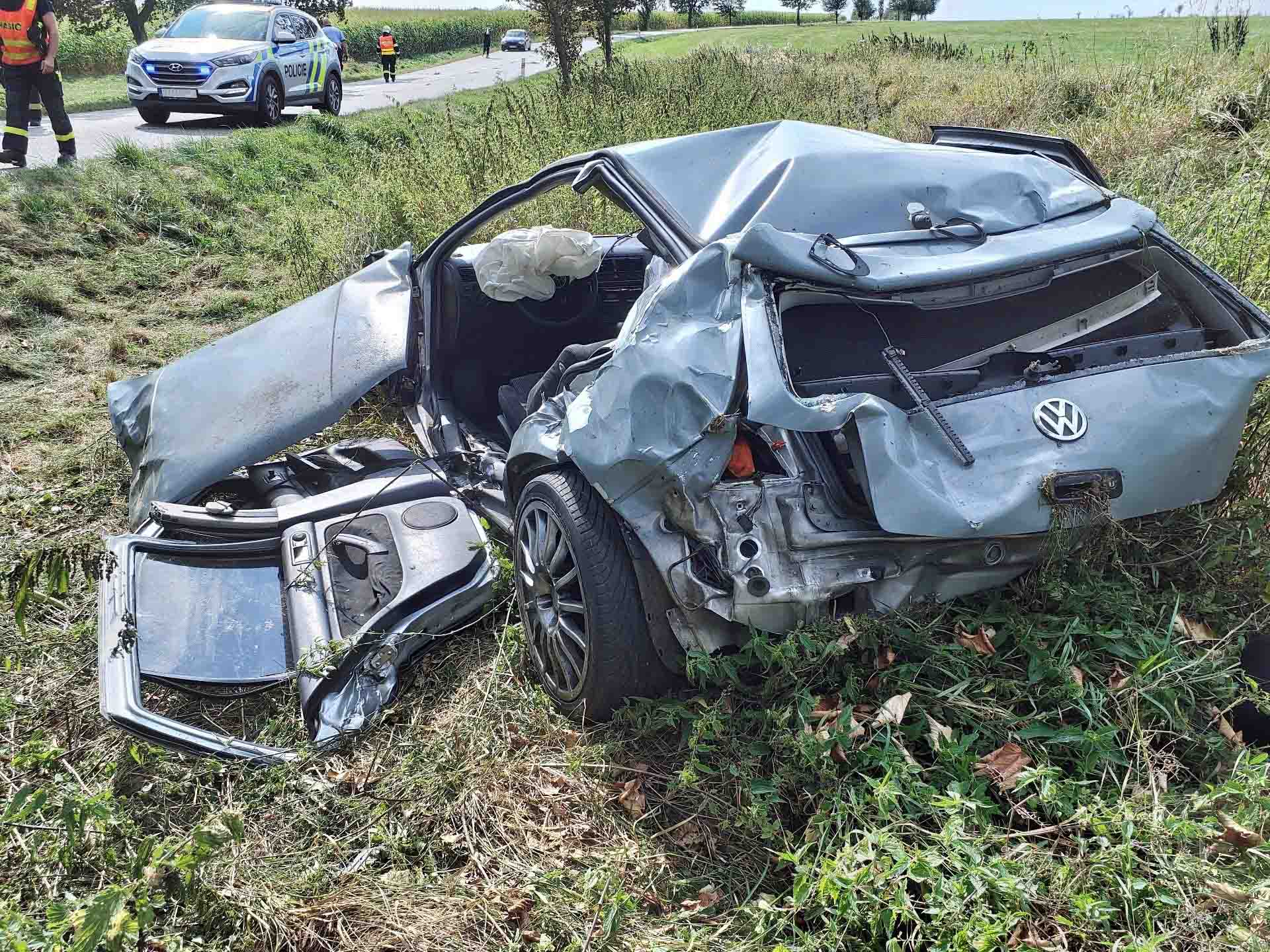 FOTO: Vážná nehoda u Tatenic! Řidič zcela zdemoloval Volkswagen, letěl pro něj vrtulník