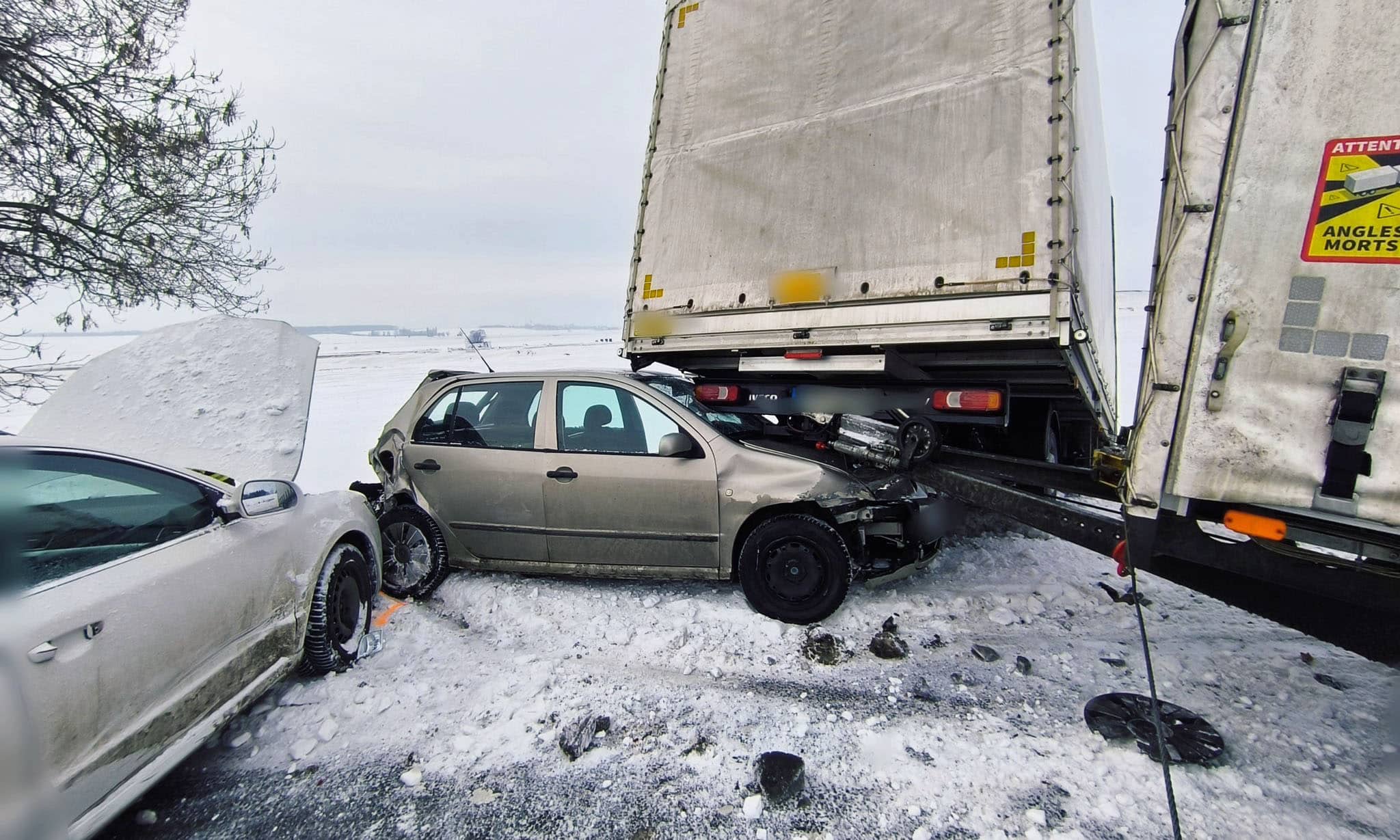 Na vytížené trase z Hořic na Hradec Králové se v pondělí kolem 11. hodiny stala vážná nehoda. Jak přesně k nehodě došlo, vyšetřují policisté. Při pohledu na záběry z místa, ale každého napadne, jak se toto mohlo stát? Na místě totiž havarovala dodávka s přívěsem, která sjela částečně do příkopu, a mezi dodávku a přívěs byla napasovaná postarší Fabie.