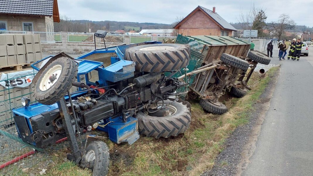 K nehodě traktoru ve Svídnici vyjeli profesionální hasiči z Chrudimi a dobrovolná jednotka ze Slatiňan. Traktor s vlekem, který byl naložený dřevem, našli převrácený na boku v příkopu. „Při převrácení poškodil plynový sloupek,“ uvedli hasiči.