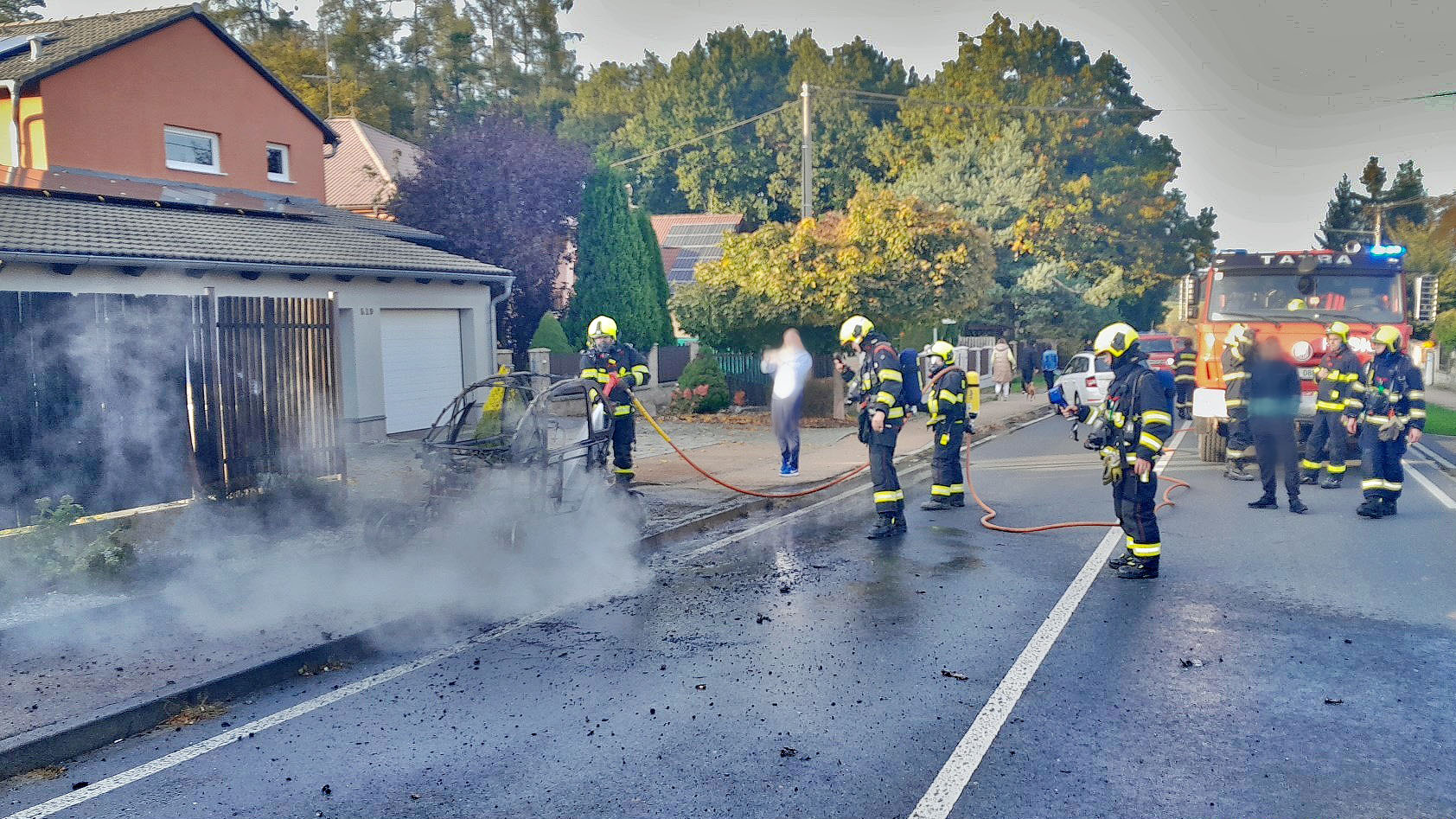 Po sérii požárů aut se spalovacím motorem se hasiči potýkali také s požárem elektromobilu. Konkrétně ve Zruči u Plzně shořelo menší kapotované vozítko, nic z něho nezbylo.