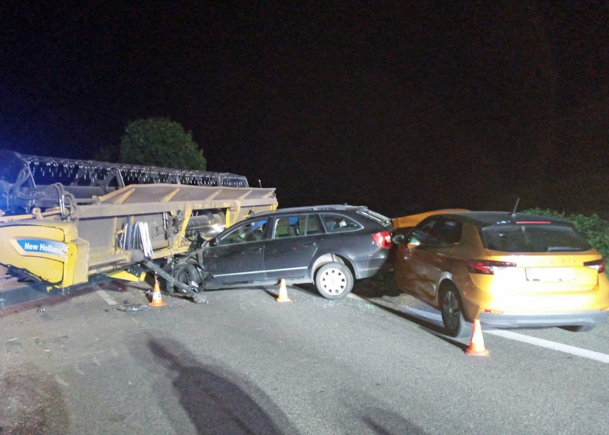 Vážně vypadající havárie se stala po 21. hodině na frekventované trase I/16 mezi Jičínem a Novou Pakou. Konkrétně poblíž Úliblic nedaleko Jičína vyjížděl kombajn z vedlejší komunikace a táhl za sebou žací lištu.