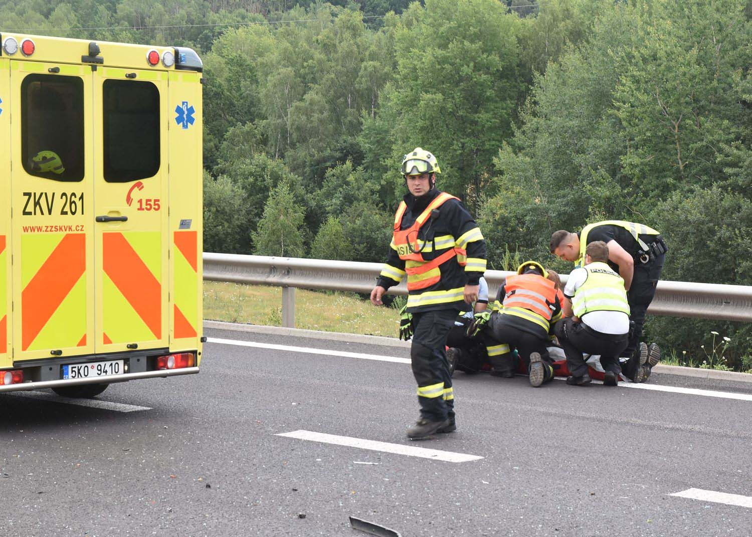Zranění některých účastníků karambolu byla vážná. „Na místě zasahovaly dva vrtulníky a čtyři jednotky hasičů,“ informovali hasiči z HZS Karlovarského kraje.