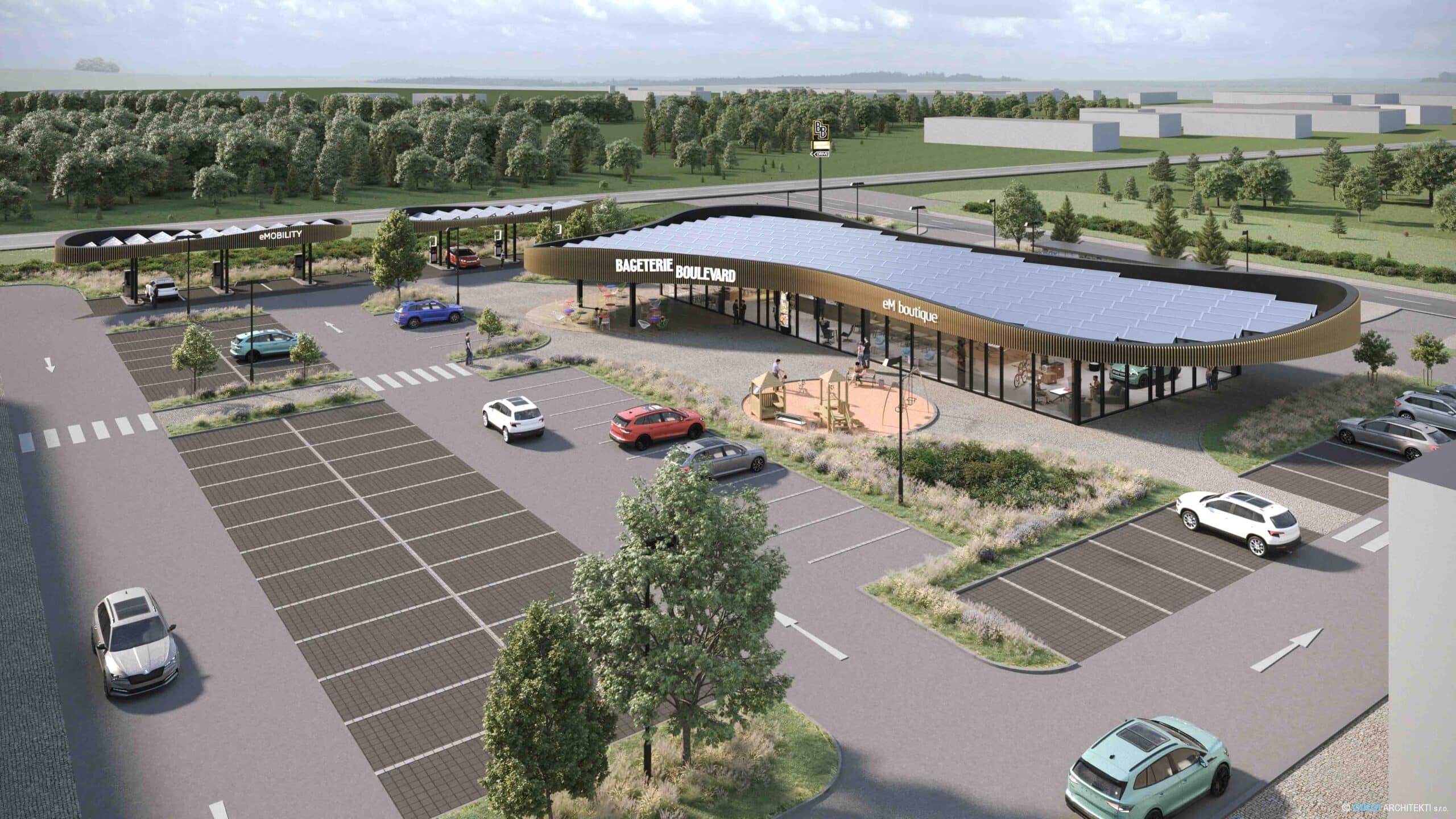 Autorizovaný dealer CB Auto zde postaví také unikátní Škoda eMobility Experience centrum. „Stavba nabíjecích hubů je pro elektromobilitu v Česku velice důležitá. Tento hub, vznikající za spolupráce autorizovaného partnera Škoda CB Auto, Bageterie Boulevard a Škoda Auto, je ukázkou toho, jak mohou vypadat moderní nabíjecí stanice spojující nabíjení s možností strávit zde svůj čas – ať gastronomickým zážitkem, nebo edukací,“ vysvětluje Jiří Maláček, vedoucí českého zastoupení Škoda Auto.