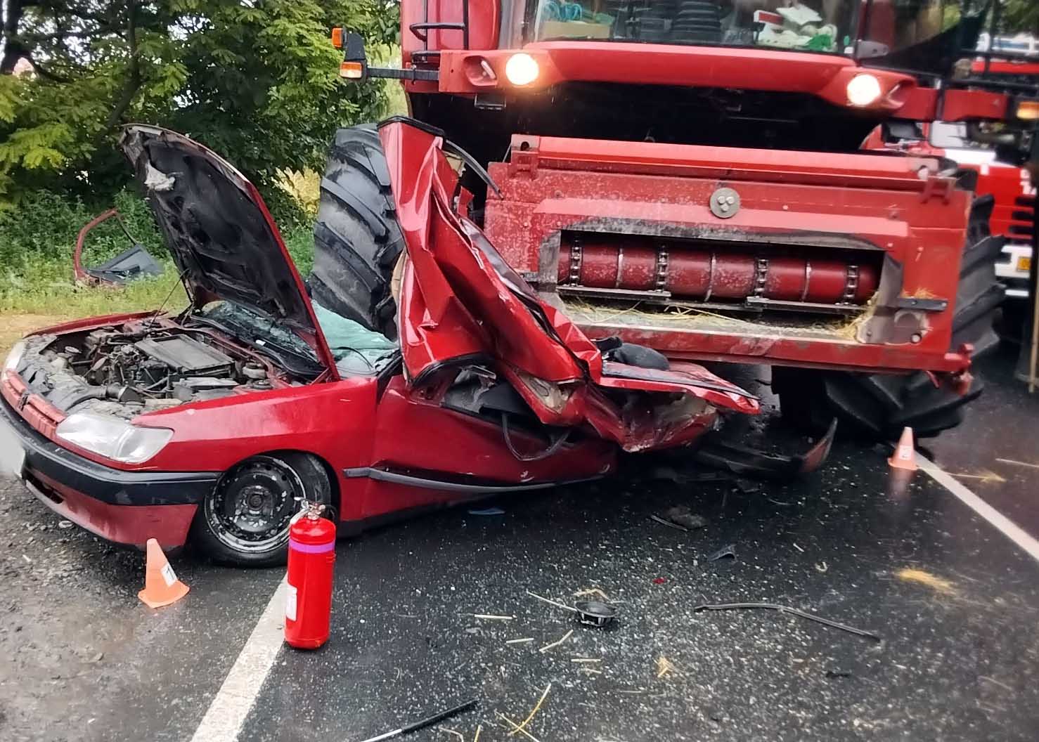 Neuvěřitelná nehoda se stala v pondělí na silnici 635 u Křelova-Břuchotína na Olomoucku. Střetl se tam starší vůz Peugeot s kombajnem. Těžký zemědělský stroj auto doslova rozdrtil, z vozu prakticky nic nezbylo.