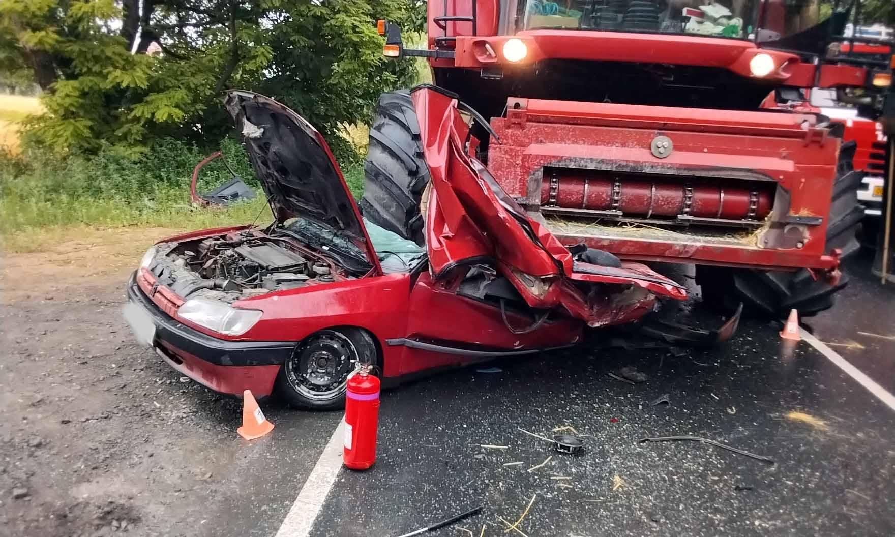 Z toho pohledu mrazí. Zcela rozdrcené osobní auto skončilo po nehodě s kombajnem Křelova na Olomoucku. Řidiče z osobního auta vyprostili hasiči, řidič kombajnu dostal psychologickou pomoc.