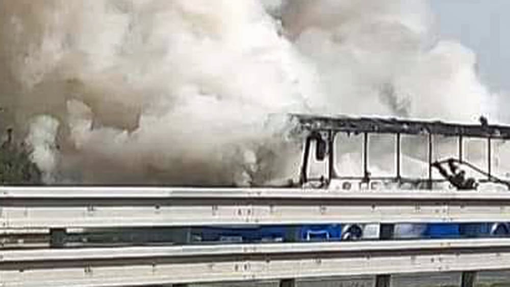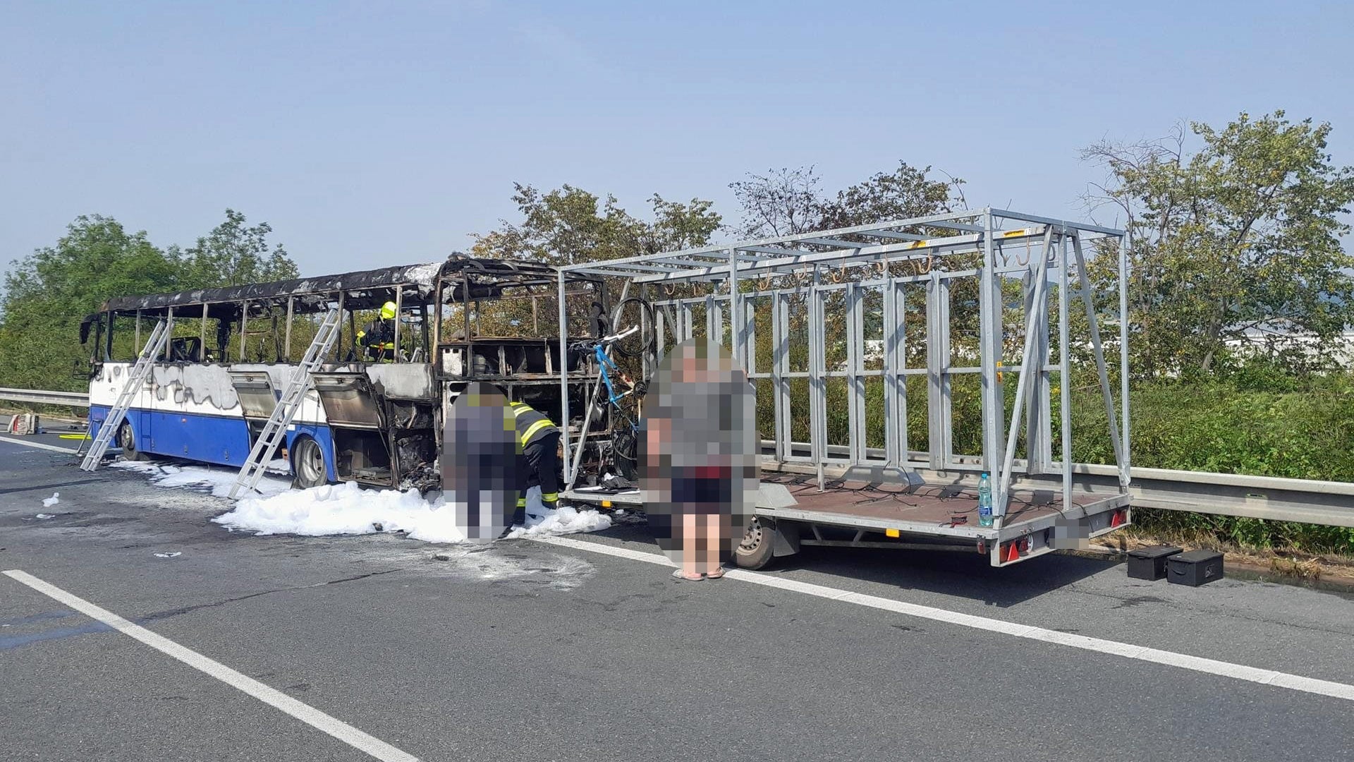 Požár autobusu na D5: 24 lidí evakuováno