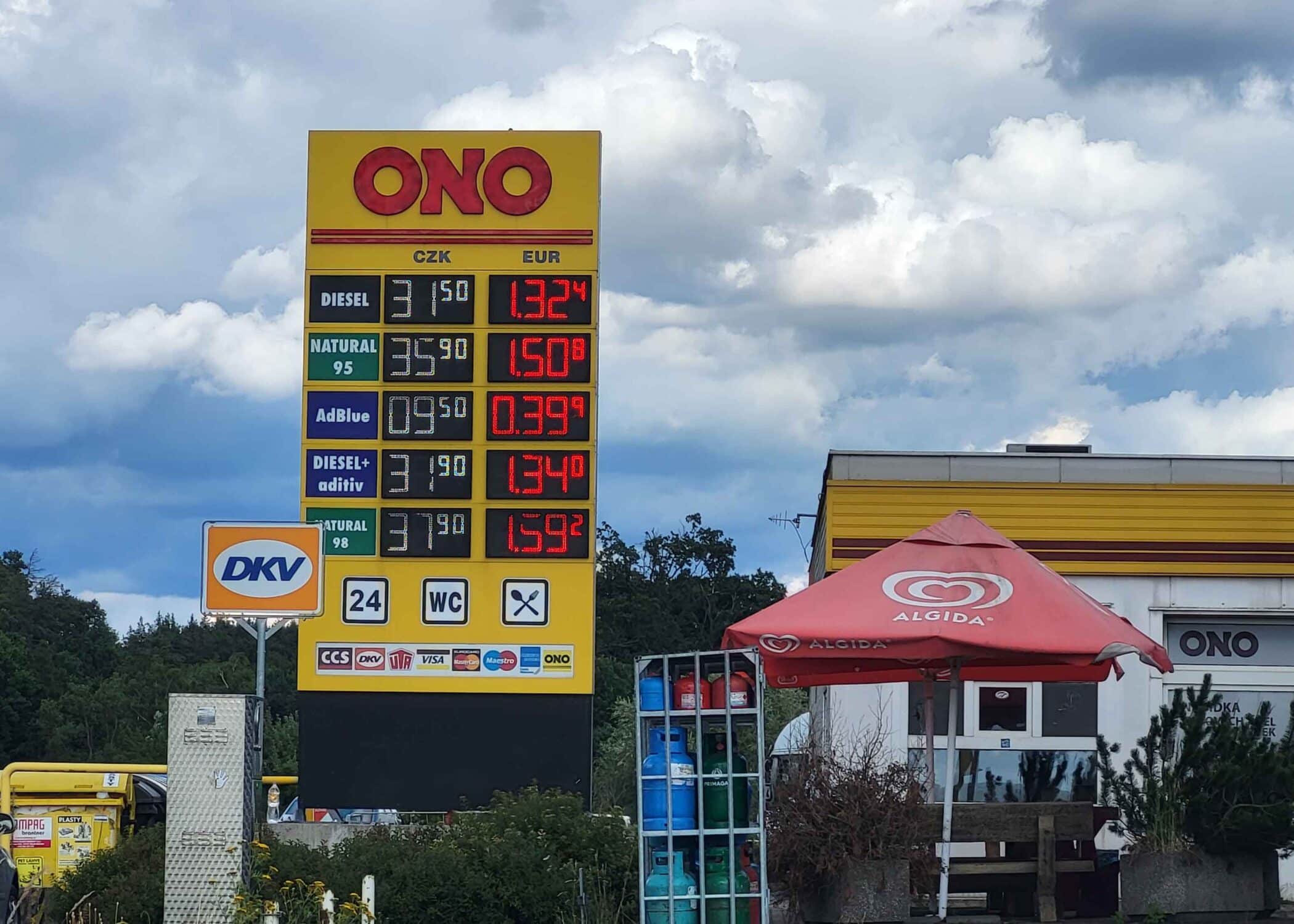 Některé benzínky už pomalu začaly ceny zvedat, i když zatím jen o haléře. Třeba v Česku nejlevnější síť čerpacích stanic Tank ONO prodávala ještě koncem června benzín za 35,50 korun, v těchto dnech na konci července už je litr Naturalu 95 za 35,90 korun. Diesel byl ještě koncem června na Tank ONO za 30,90 Kč, teď na konci července se prodává už za 31,90 korun.