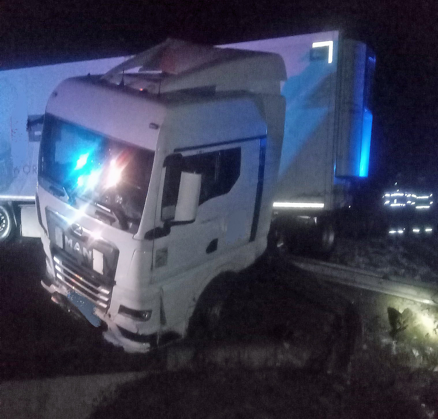 Také na dálnici D11 z Hradce Králové na Prahu omezuje dopravu na 73. kilometru. I tam kamion zůstal po nehodě napříč silnicí, pobořil svodidla a kabinou skončil mimo silnici.