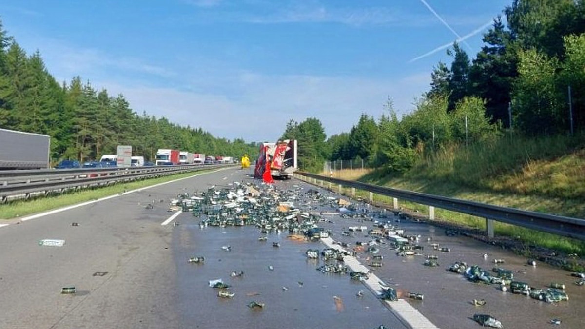 Nehoda komplikuje v pondělí dopoledne provoz na 95. kilometru dálnice D1 ve směru na Prahu. Před sjezdem na Humpolec havaroval nákladní automobil, ze kterého se vysypaly plechovky s pivem.
