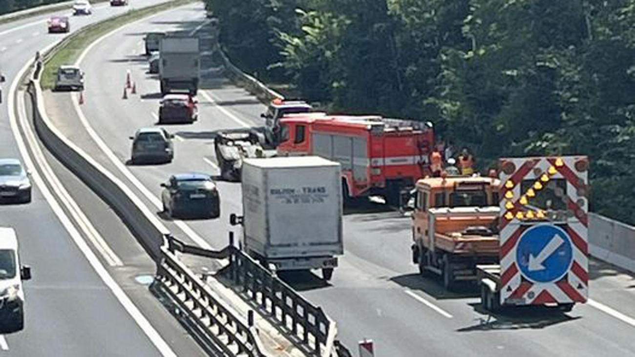 Na dálnici D10 ve směru na Prahu se stala ve čtvrtek odpoledne nehoda. Za mostem na Káraný, tedy za sjezdem na Starou Boleslav, se po nehodě převrátilo osobní auto na střechu.