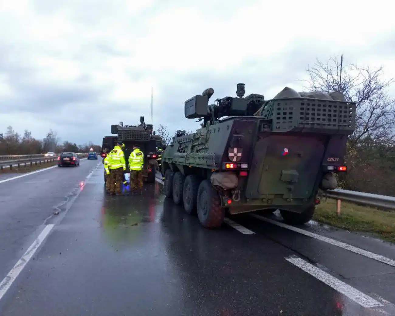 „Ve vojenské koloně byla tři obrněná vozidla pandur, jedno doprovodné nákladní vozidlo a dvě vojenská osobní auta,“ sdělila policejní mluvčí Michaela Richterová.
