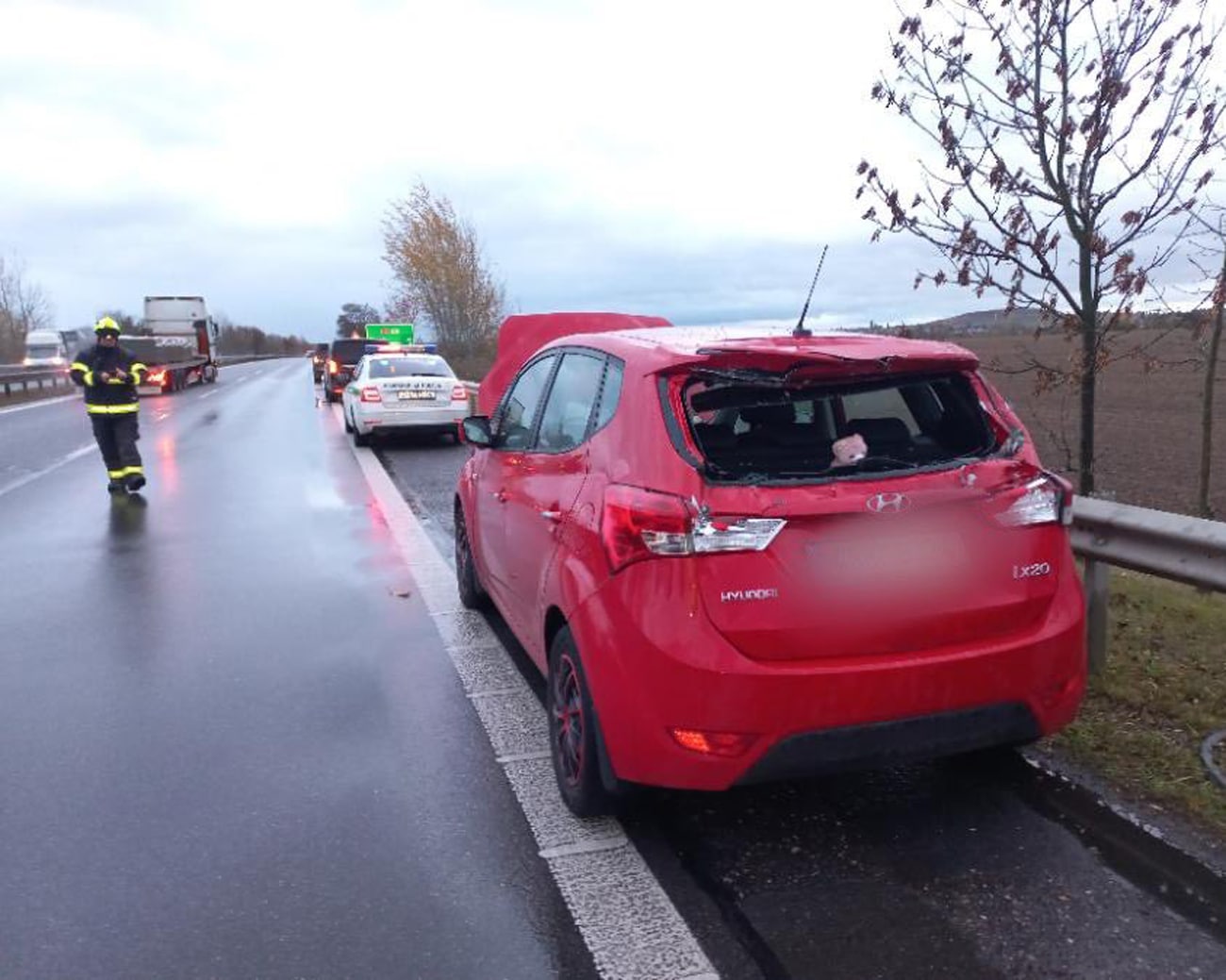 Dopravu na dálnici D6 ve směru na Prahu poblíž obce Lány komplikovala od rána nehoda. Na 25. kilometru se do kolony vojenských vozidel zařadila řidička osobního auta Hyundai, která následně do jednoho z obrněných vozidel nabourala.